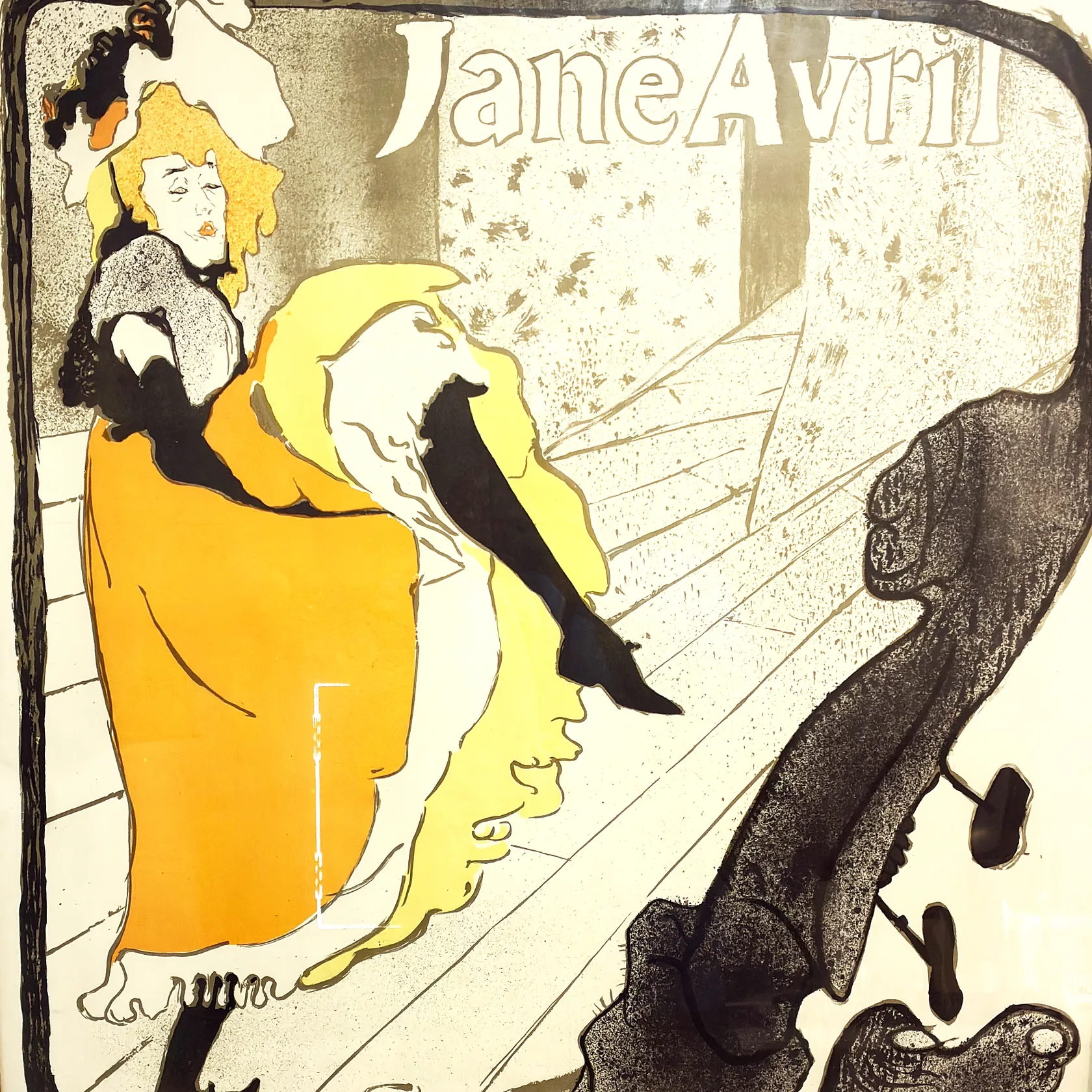 Litografi efter Henri Toulouse-Lautrec, Jane Avril, rammått 85x63cm, gulnad Skickas med postpaket.