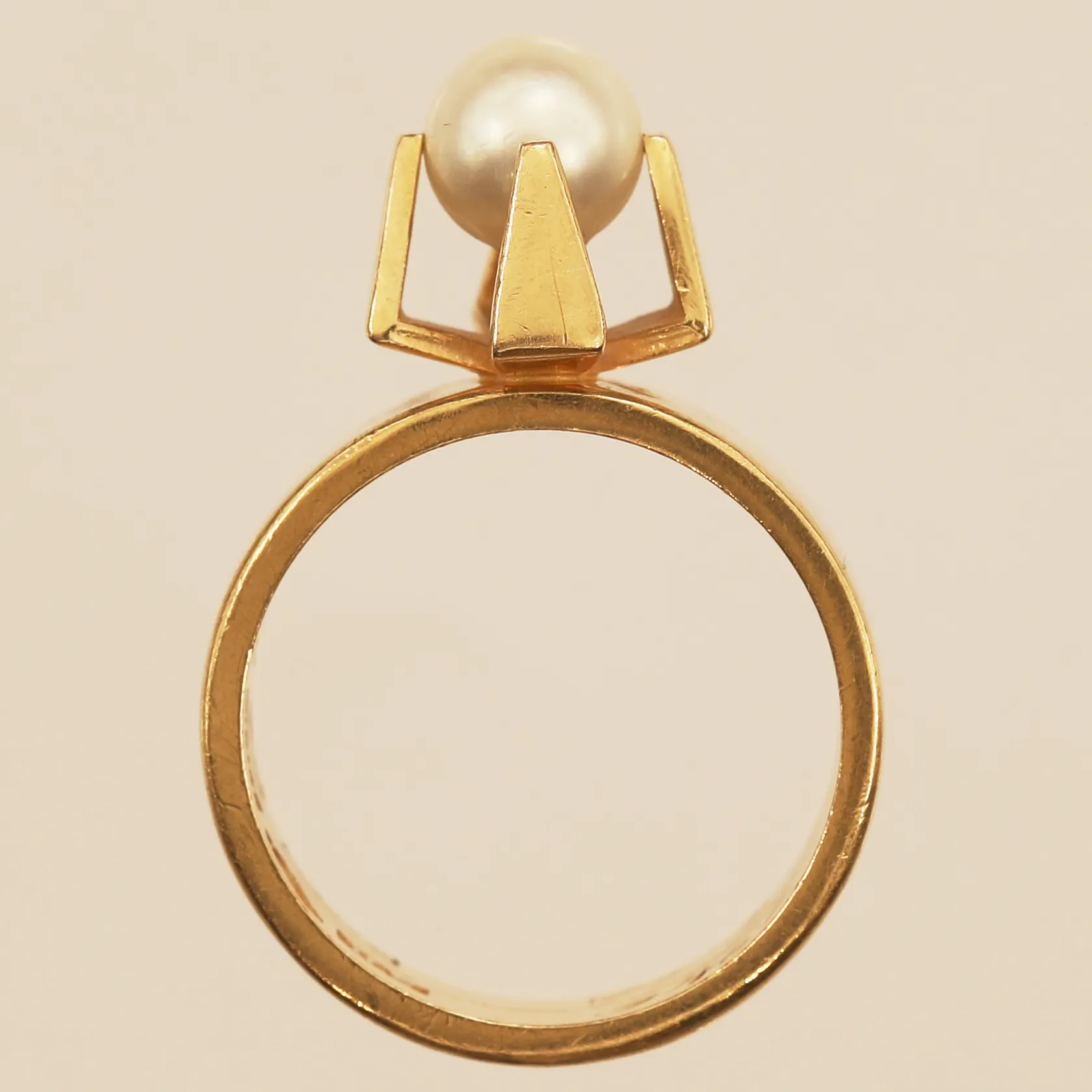 Ring med pärla, stl 17¾, bredd 10,4mm, gravyr, 18K Vikt: 9,8 g.