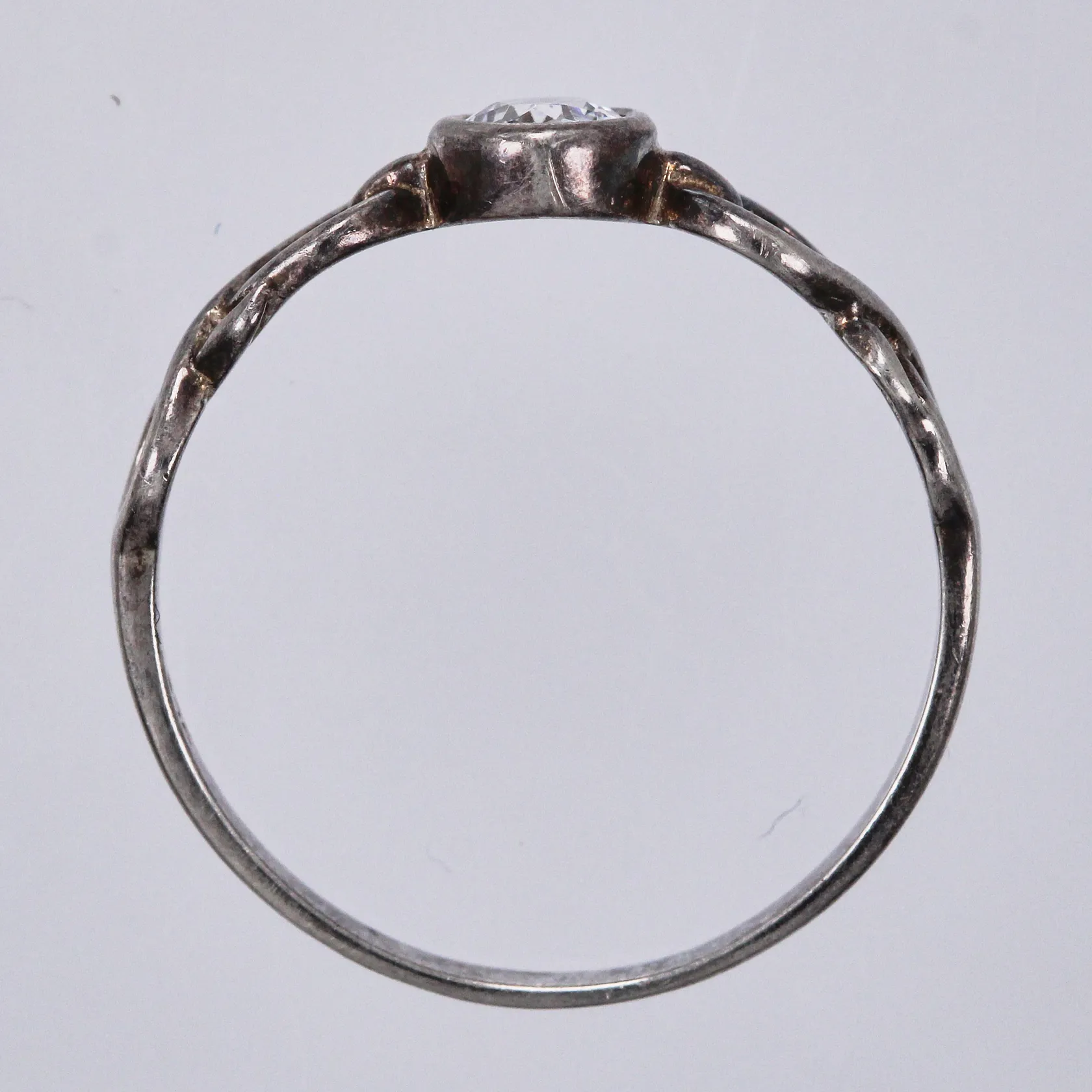 Ring med vit sten, stl: 17½, bredd ca 2-6mm, 925/1000 silver Vikt: 1,4 g.