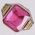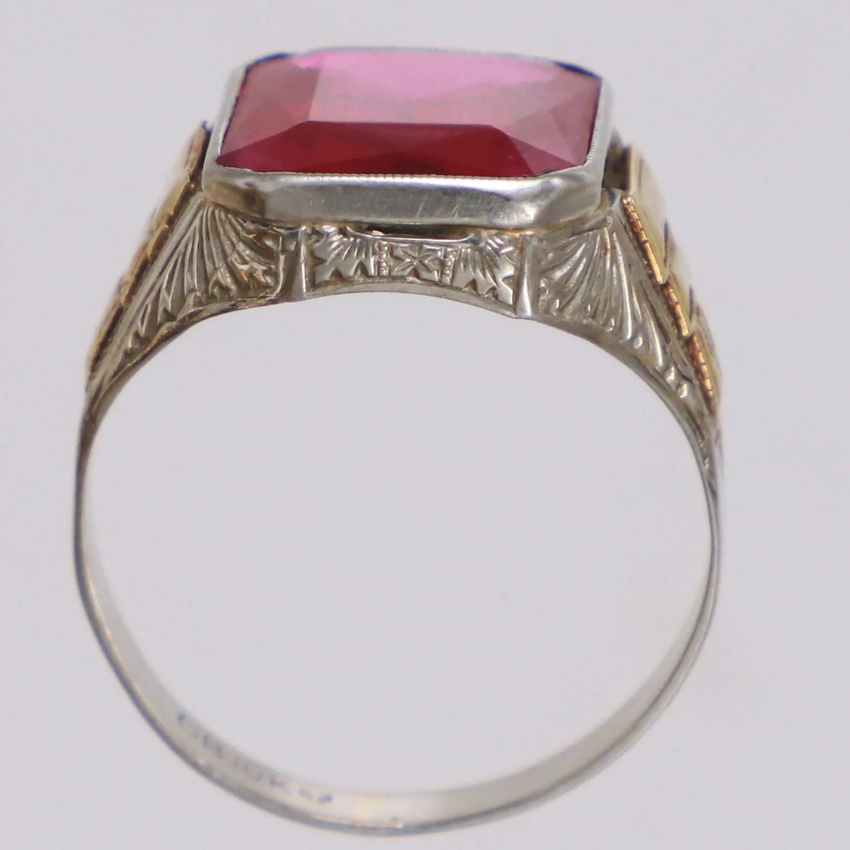 Klackring med röd sten, stl 20¼, bredd 3,5-15,7mm, tvåfärgad, 10K Vikt: 5 g.