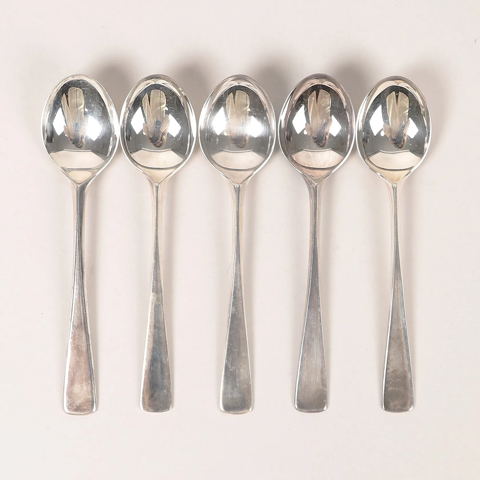 Fem kaffeskedar, längd ca 11,4cm, 830/1000 silver Vikt: 71 g.