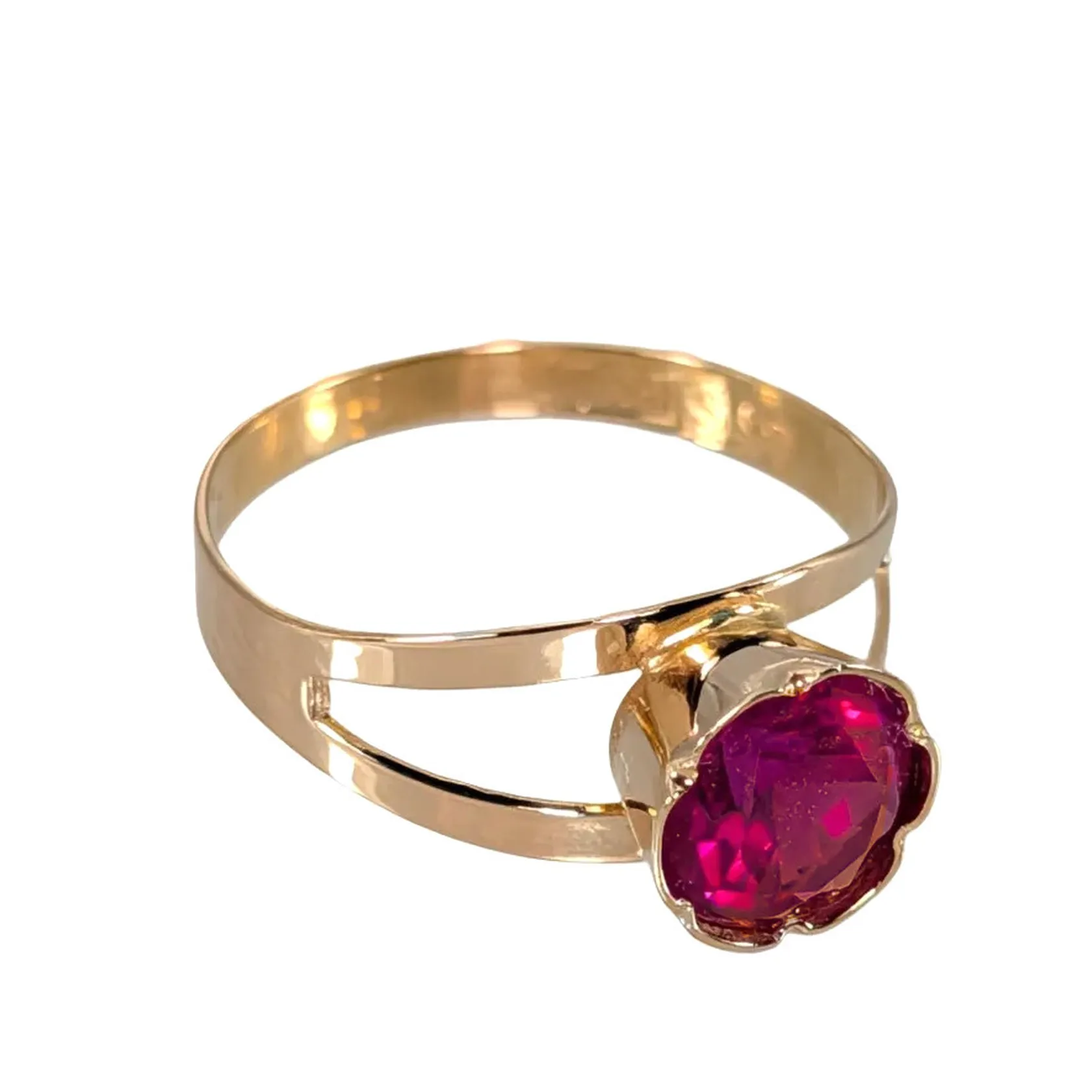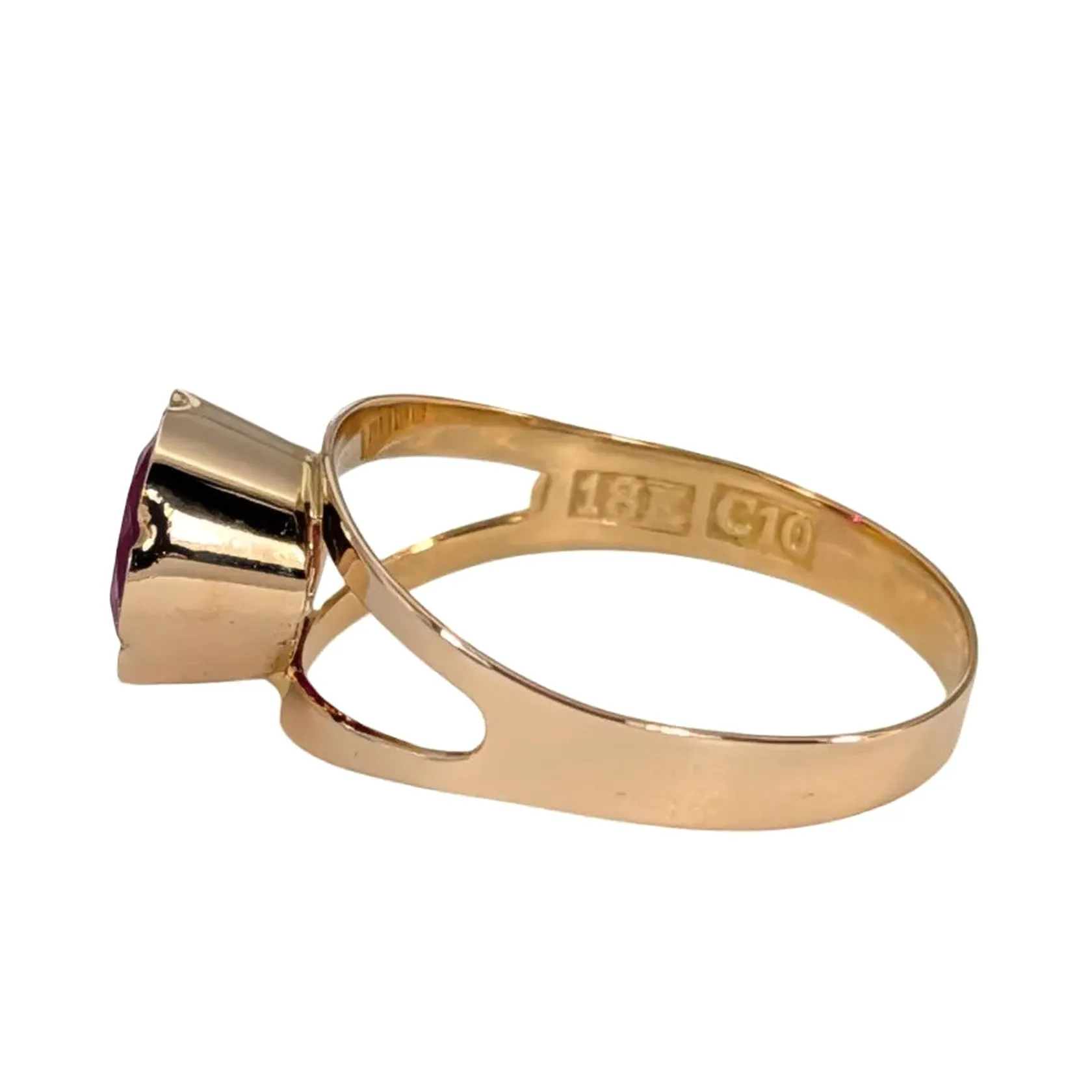 Ring 18K guld Atelje Waldemar Jonsson Skara, syntetisk Rubin Ø7,5 mm, svensk kontrollstämpel, Ø17¼ mm, bredd 2-8 mm, mycket fint skick, sten utan anmärkning Vikt: 1,8 g.