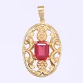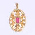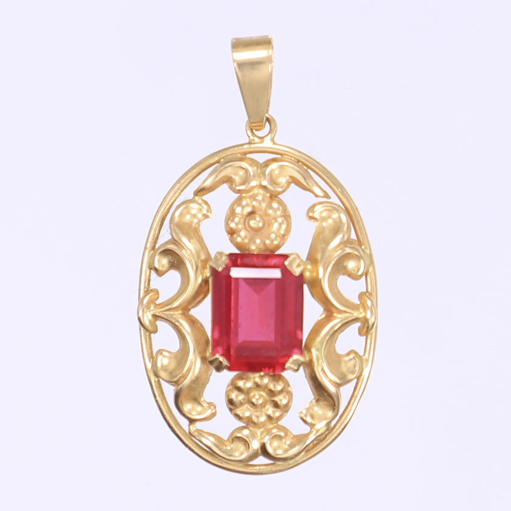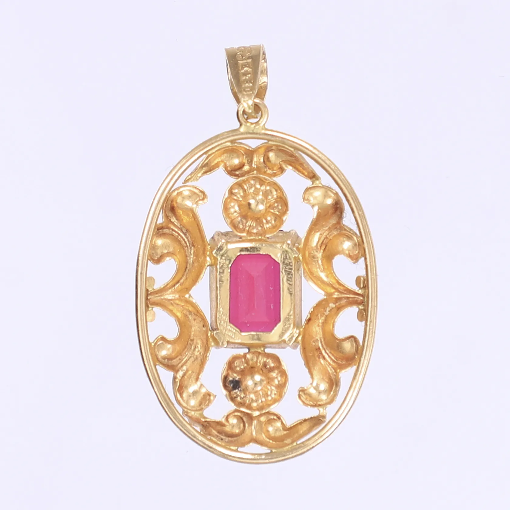 Hänge med röd sten och genombruten dekor, 34x18mm inkl. ögla, tillv. K&EC, 18K Bruttovikt: 2,8g Vikt: 2,8 g.