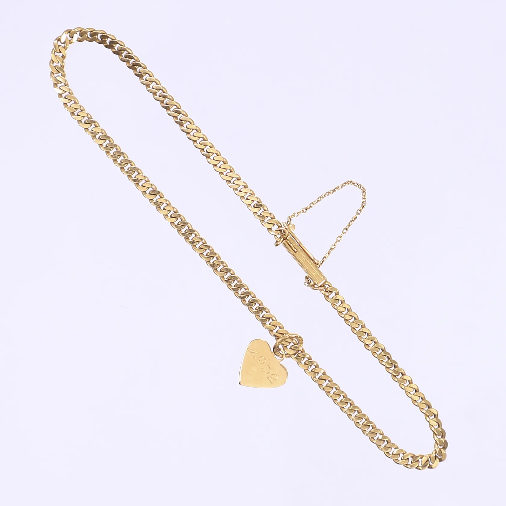 Armband pansar med en berlock 17,5cm, bredd 2mm, säkerhetskedja, gravyr, 18K Vikt: 4 g.