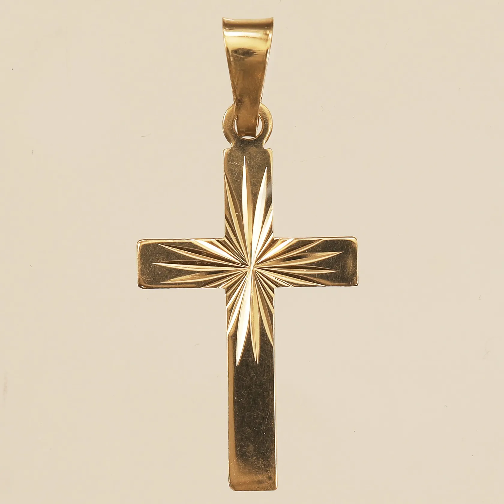 Hänge kors, längd 18mm inkl ögla, bredd 13mm, 18K Vikt: 0,8 g.