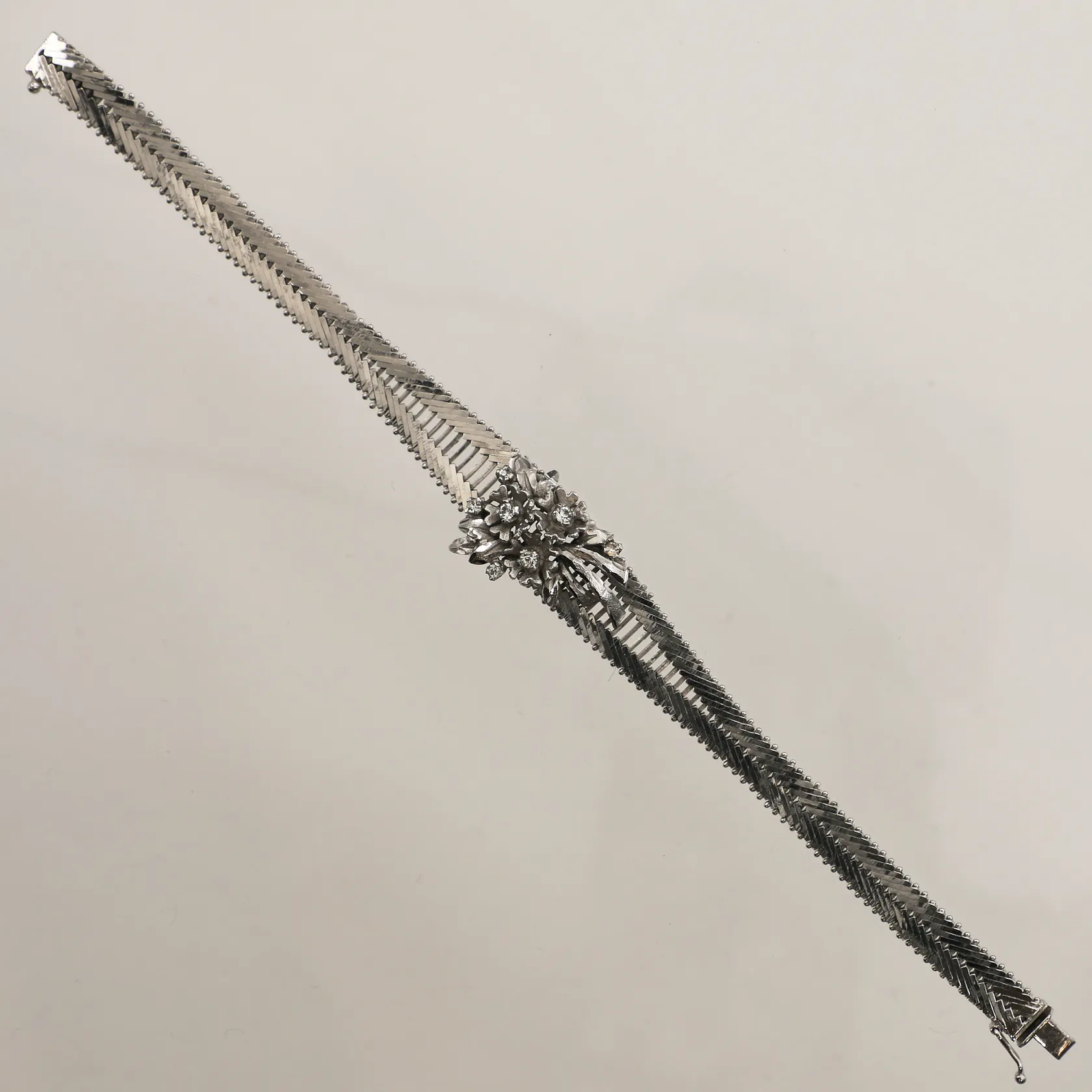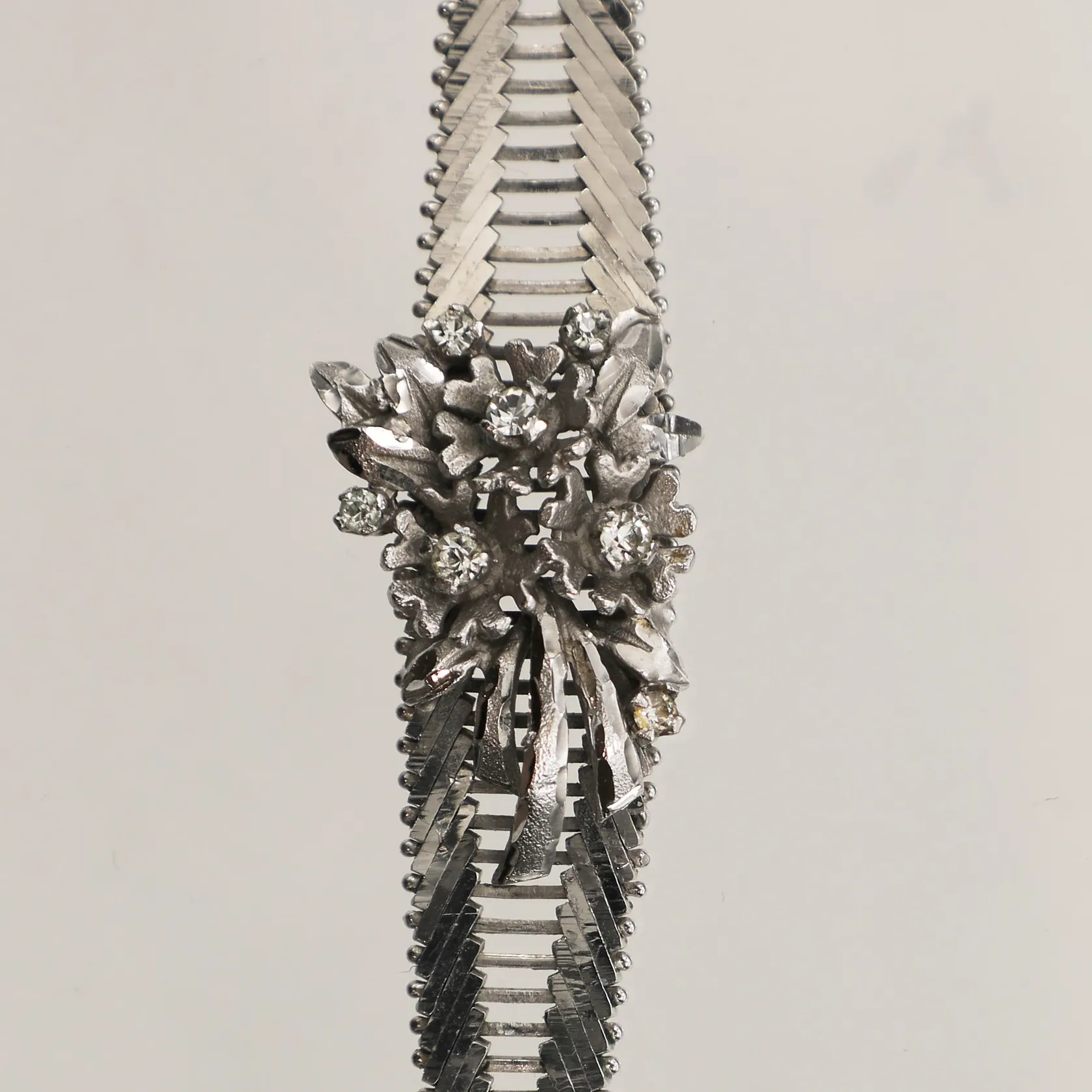 Armband med vita stenar, längd 18,5cm, bredd 17mm, 830/1000 silver Vikt: 22,4 g.