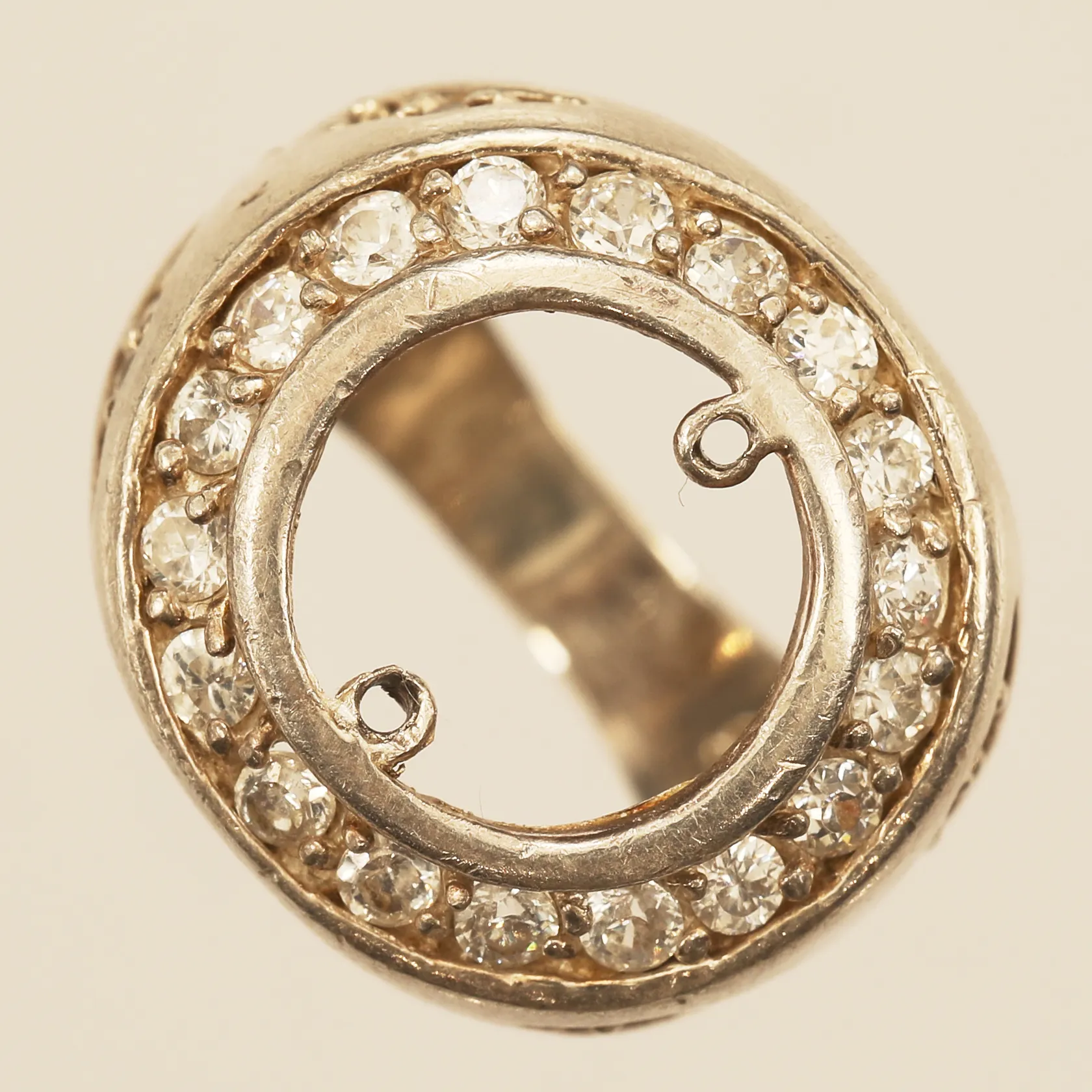 Ring med vita stenar, stl 18½, bredd 21mm, saknar mitt, 925/1000 silver Vikt: 12,4 g.