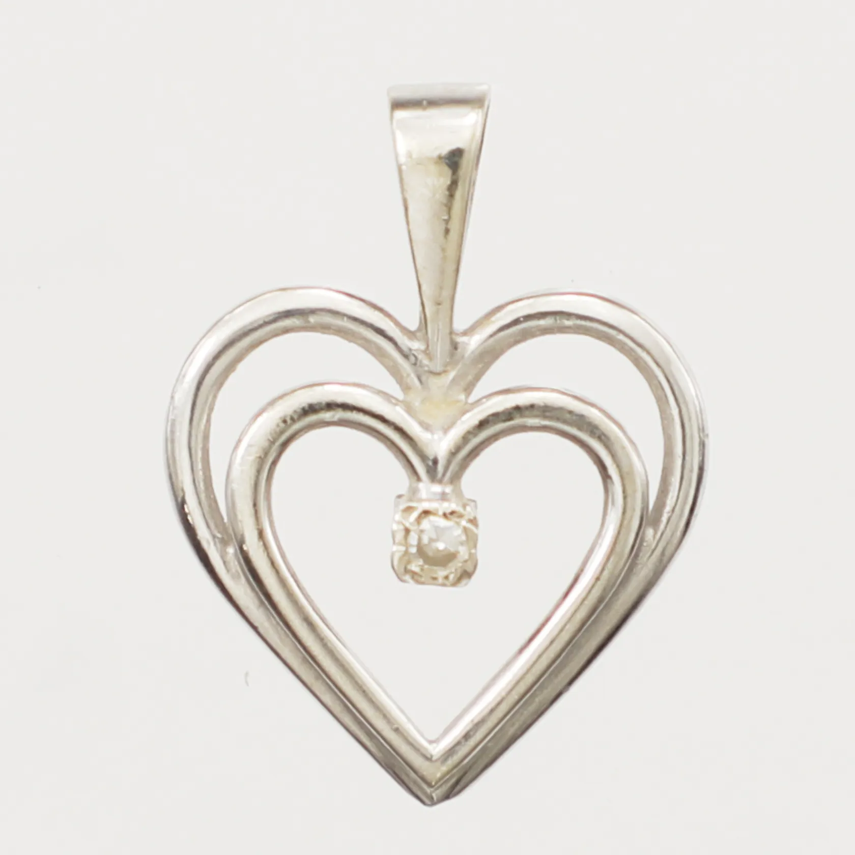 Hänge hjärta med diamant, ca0,01ct, längd 18mm, bredd 13,4mm, vitguld, 14K Vikt: 1 g.