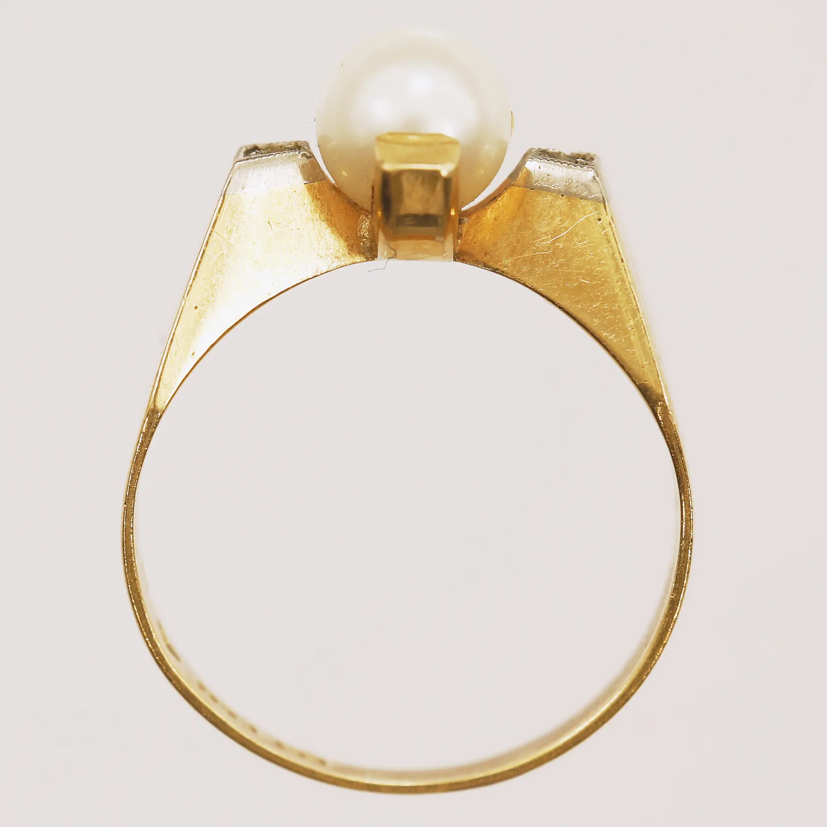 Ring med pärla och stenar, stl 16, bredd 2,8-9,2mm, Alton, år 1966, 18K Vikt: 3 g.