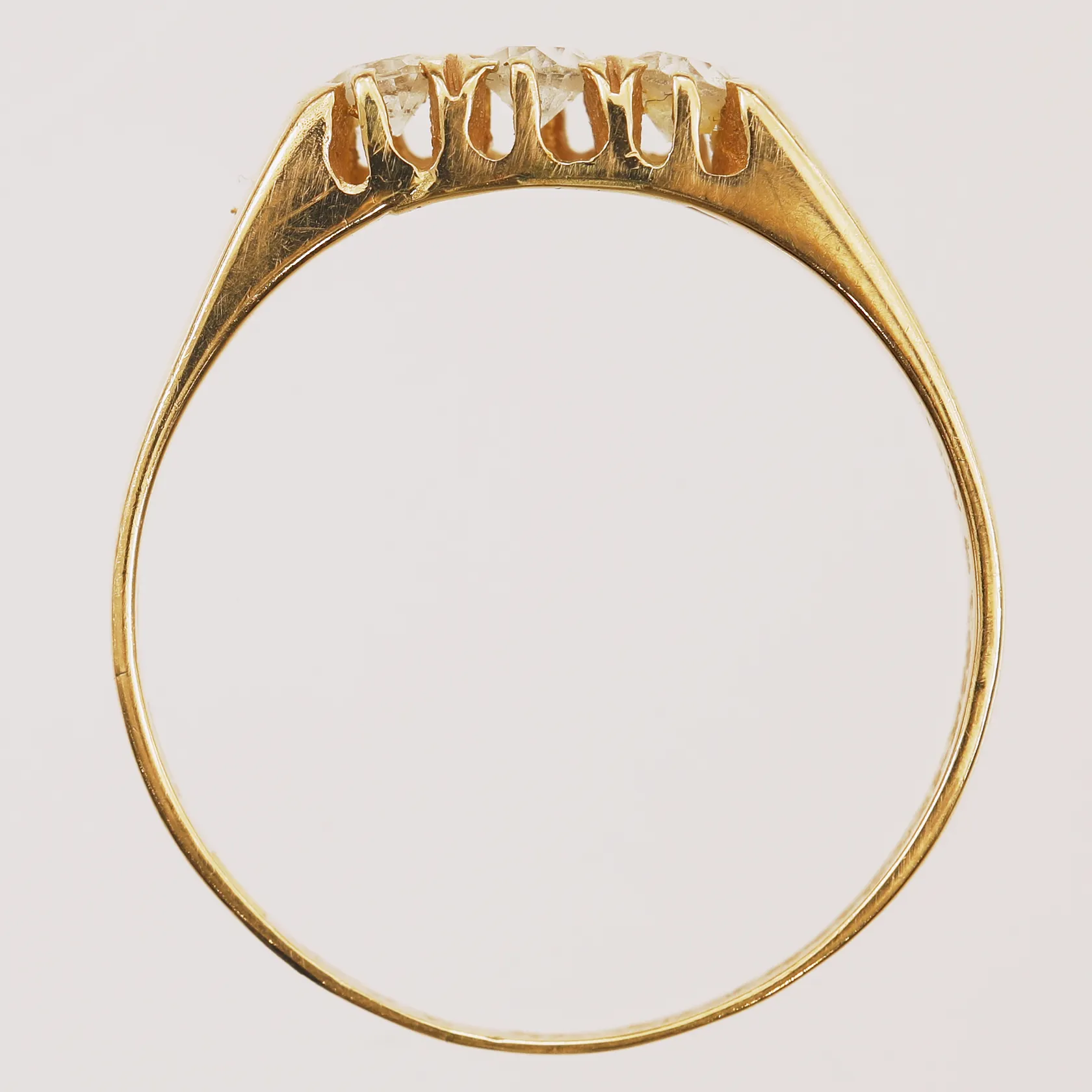 Ring med vita stenar, slitna fasetter, stl 19, bredd 1,8-3,4mm, 18K Vikt: 2,3 g.