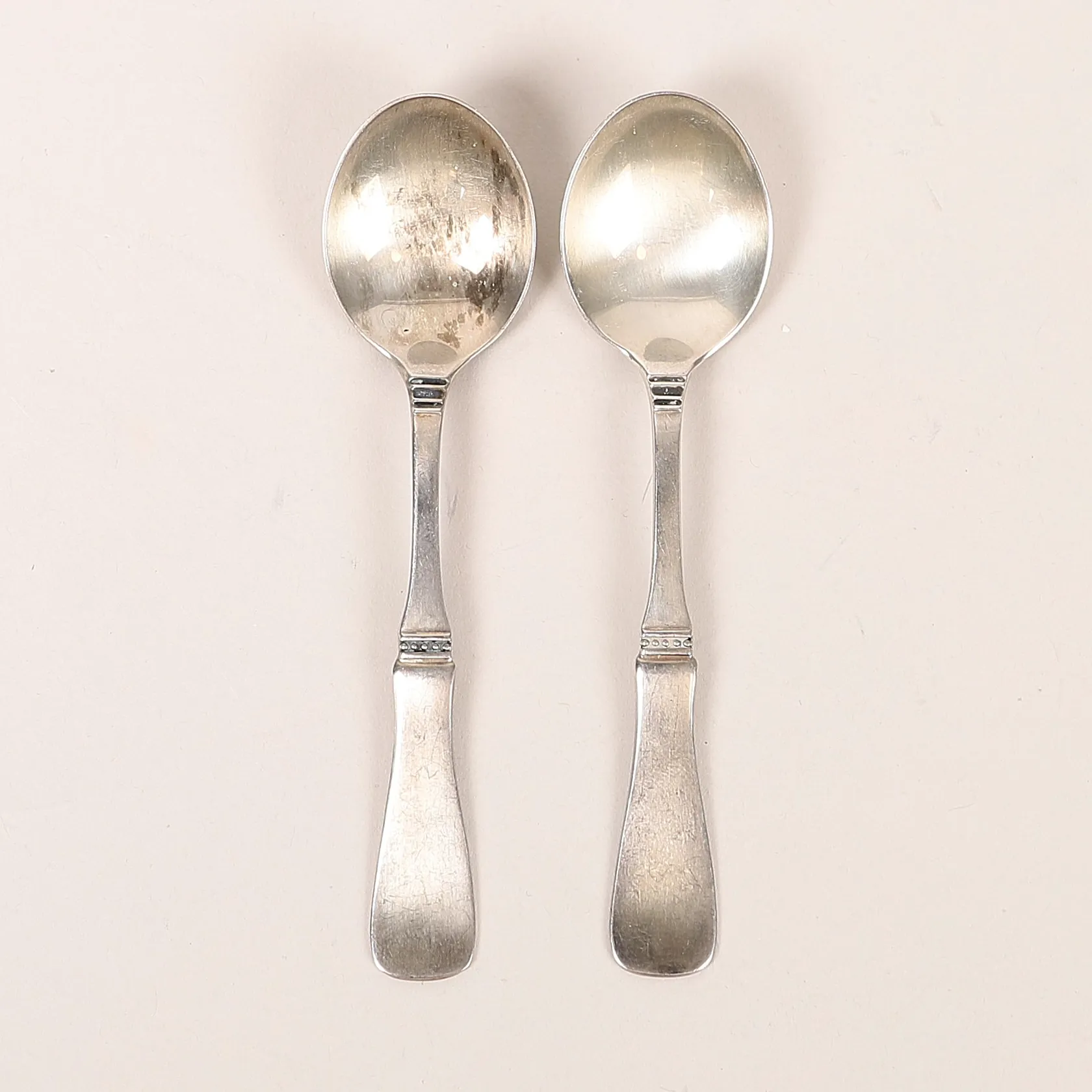 Två kaffeskedar, modell Uppsala, längd ca 11mm, 830/1000 silver Vikt: 26,1 g.