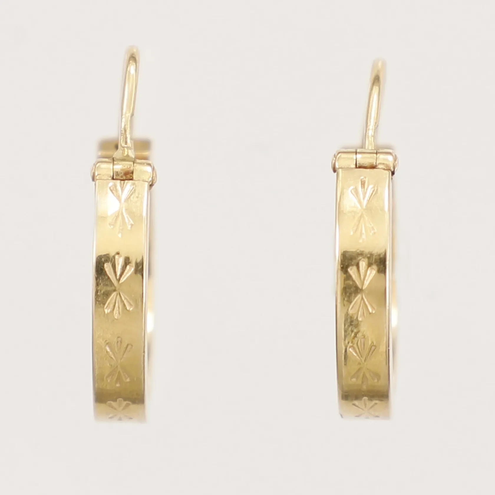 Ett par örhängen Creoler med mönsterdekor, Ø 15mm, bredd 2,7mm, 18K Vikt: 1,6 g.