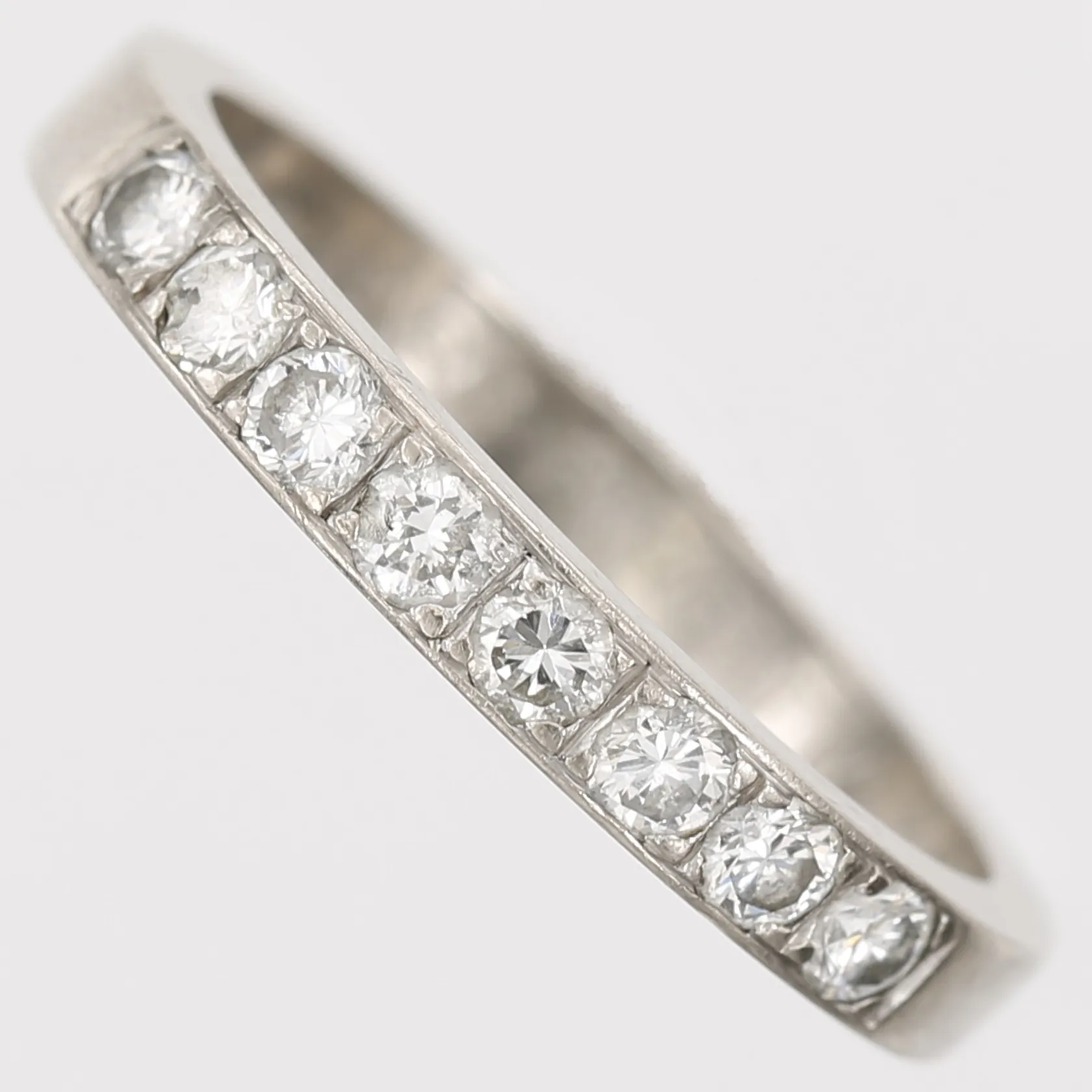 Ring med diamanter 8 x ca 0,04ct, stl: 16½, bredd: 3mm, 18K vitguld. Vikt: 3,2 g.