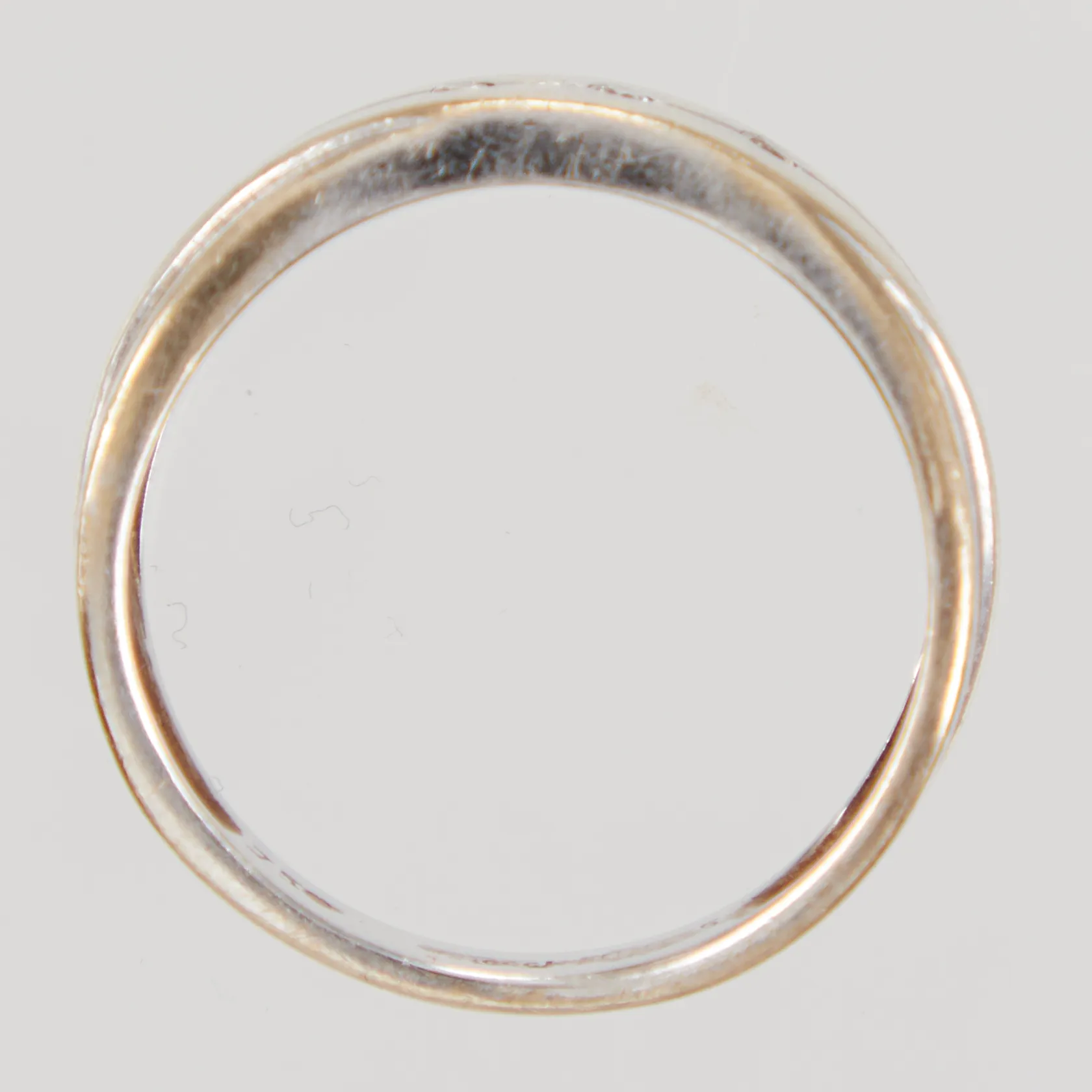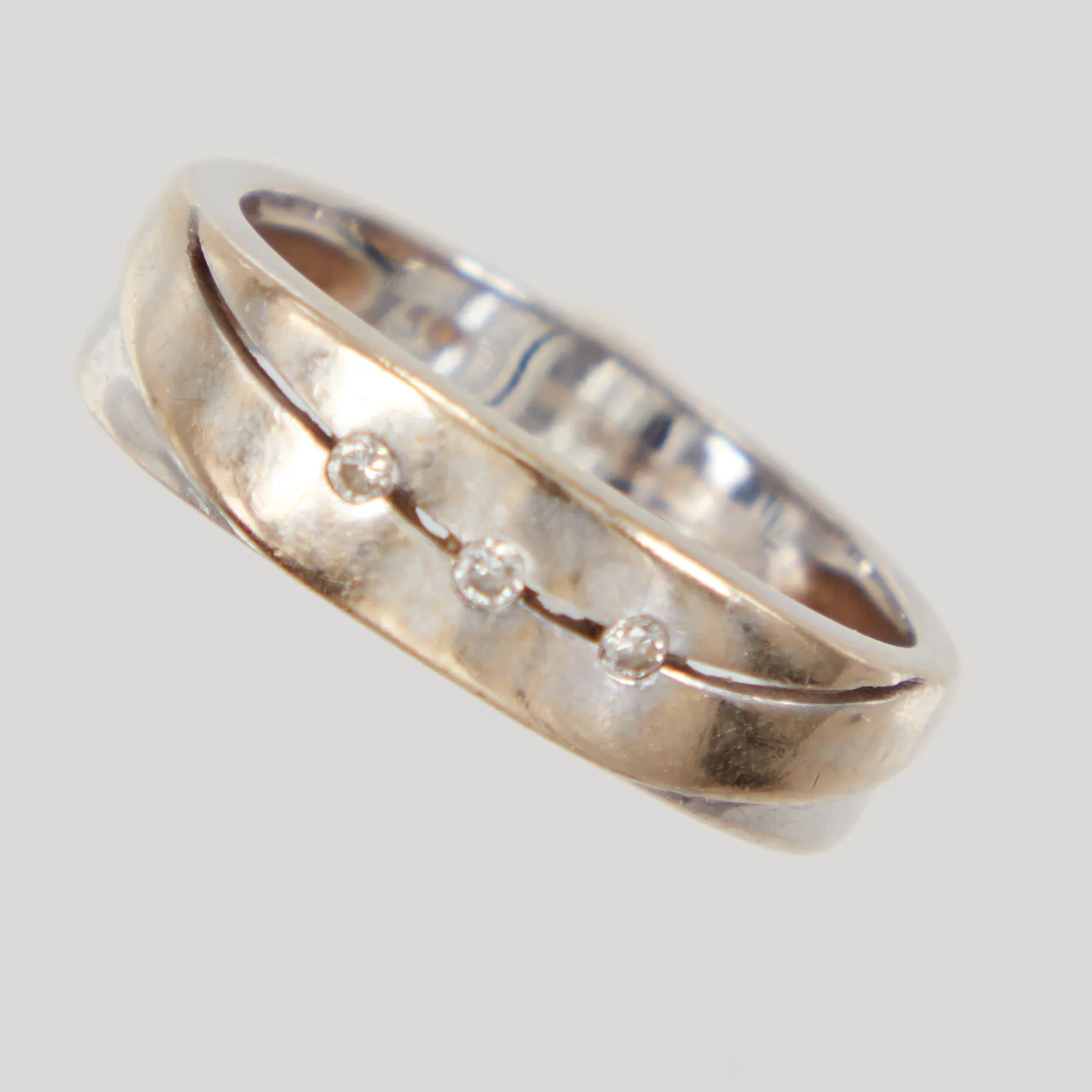 Ring, diamanter 3x ca 0,005ct, stl ca 17, bredd 3,2 - 5,4mm, slitet/ojämn skena, vitguld, CCC 18K Vikt: 3,7 g.