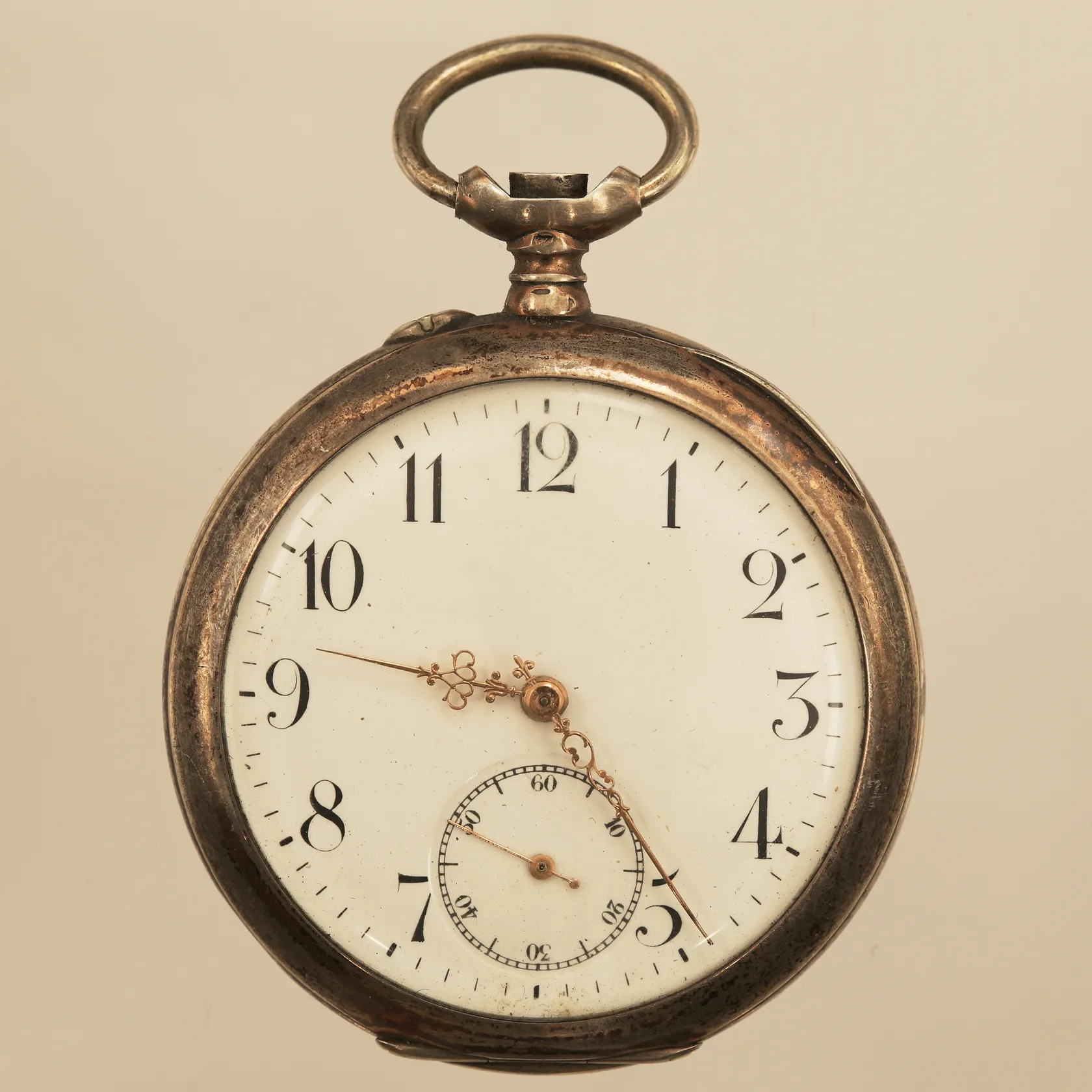 Fickur, Ø50mm, innerboett i silver, liten sekundvisare, defekt, saknar krona, 800/1000 silver
