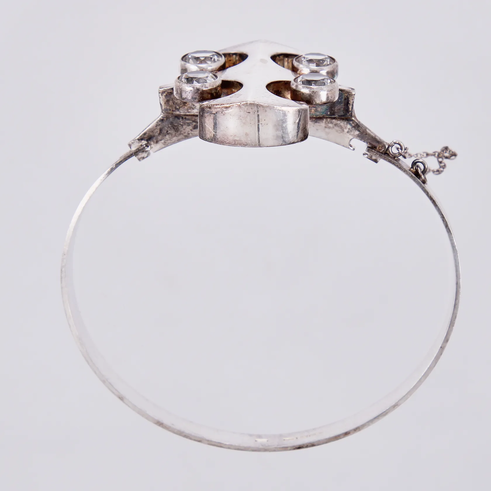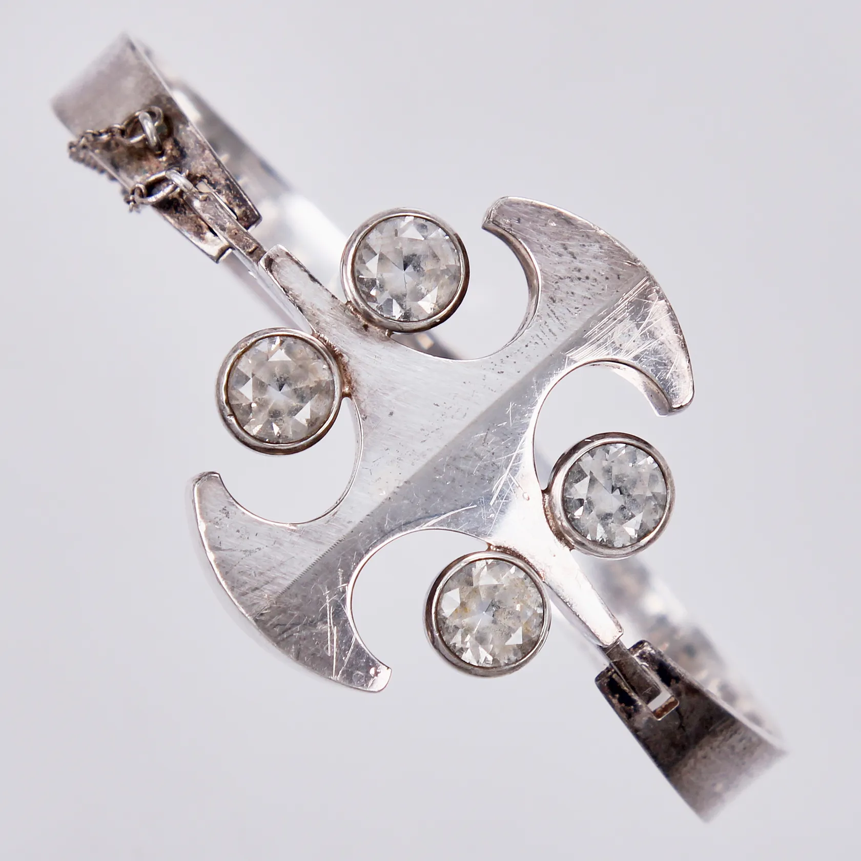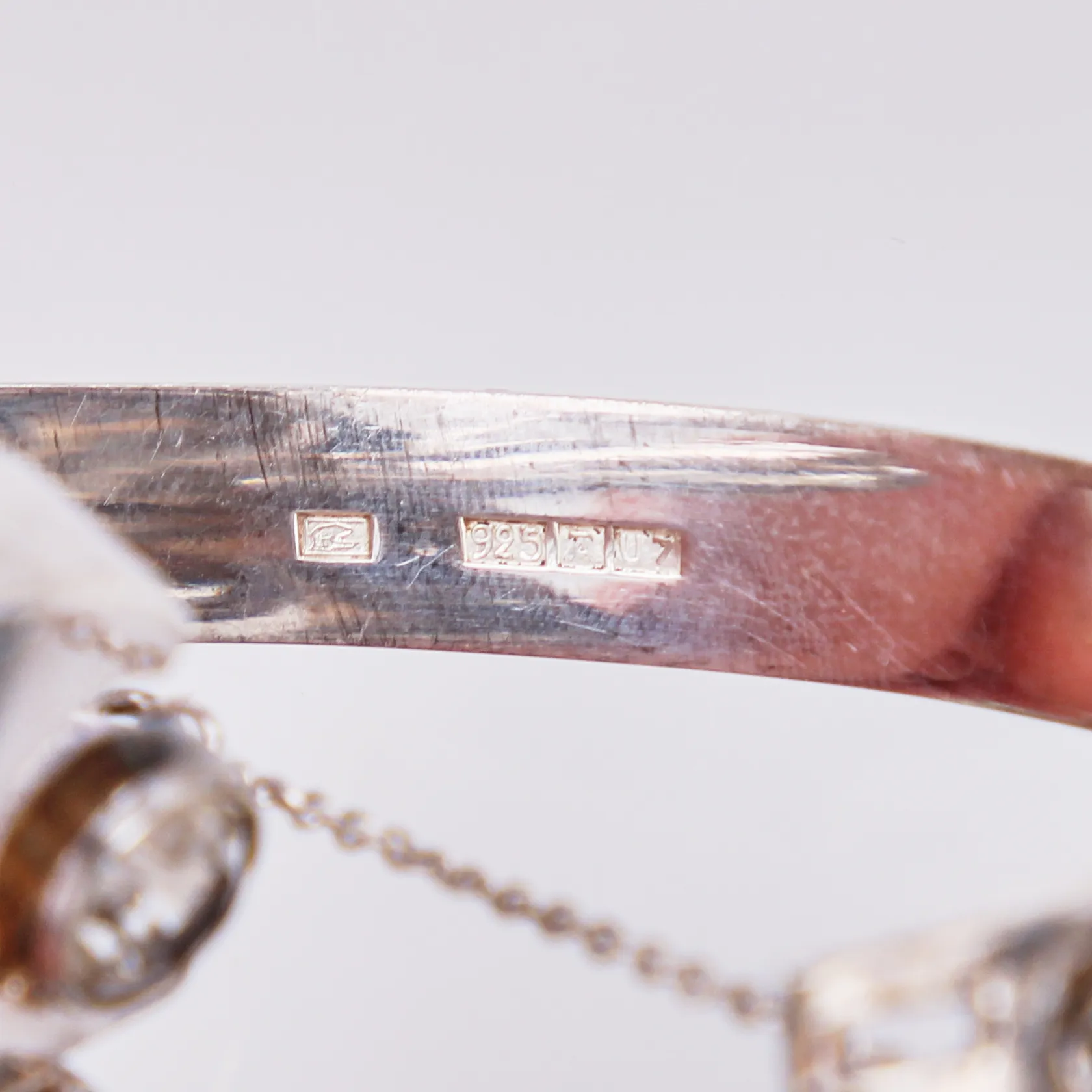 Stel armring Salovaara med bergskristaller inner Ø ca 62mm öppningsbar, bredd: ca 6-33mm, 925/1000 silver Vikt: 26,1 g.