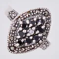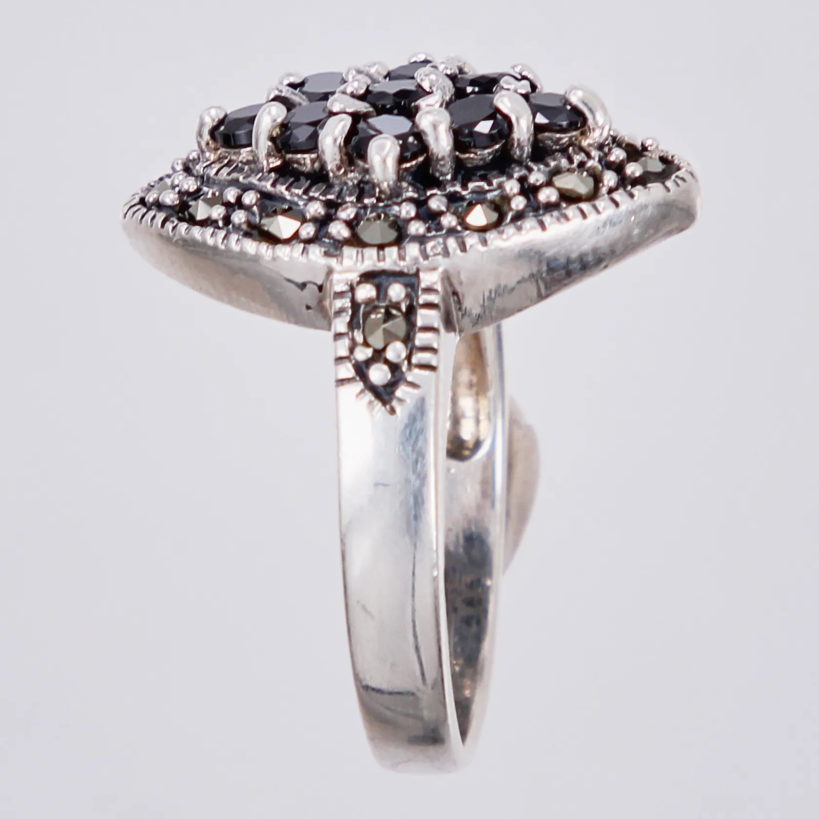 Ring med markasiter och onyx stl: 16¾ bredd: ca 3-19mm, 925/1000 silver Vikt: 4,9 g.