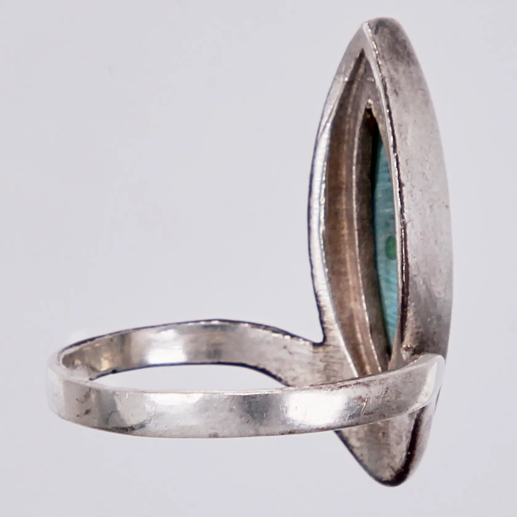Ring med turkos sten stl: 18¾ bredd: ca 2-26mm, 925/1000 silver Vikt: 4,5 g.