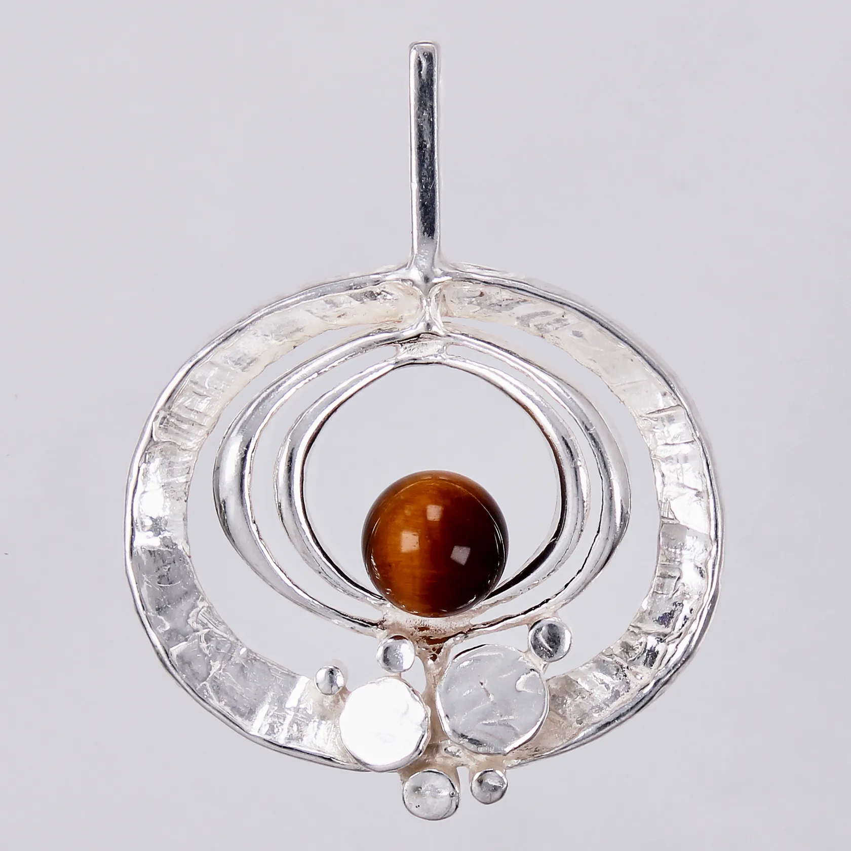 Hänge med tigeröga Theodor Klotz Teka längd: ca 5,3cm bredd: ca 40mm, 925/1000 silver Vikt: 13,9 g.