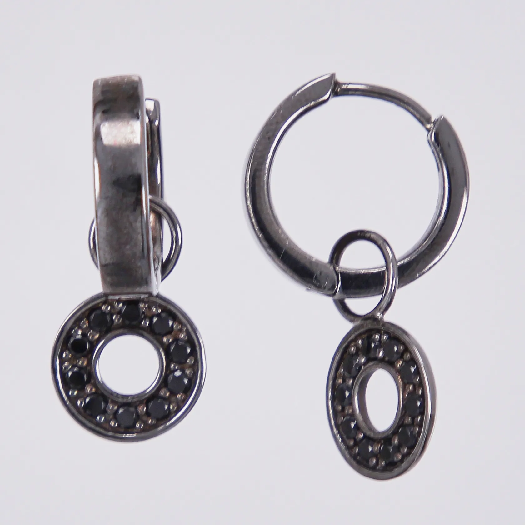 Ett par örhängen creoler med hängen avtagbara längd: ca 25cm bredd: ca 3,5-10mm oxiderade 925/1000 silver Vikt: 5,9 g.