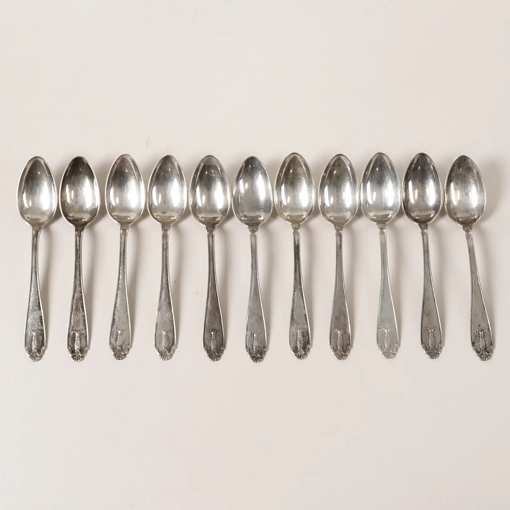 11 Kaffeskedar, modell Vasa, längd: 12,5cm, gravyr, GAB, Stockholm år 1924, 830/1000 silver. Vikt: 176,3 g.