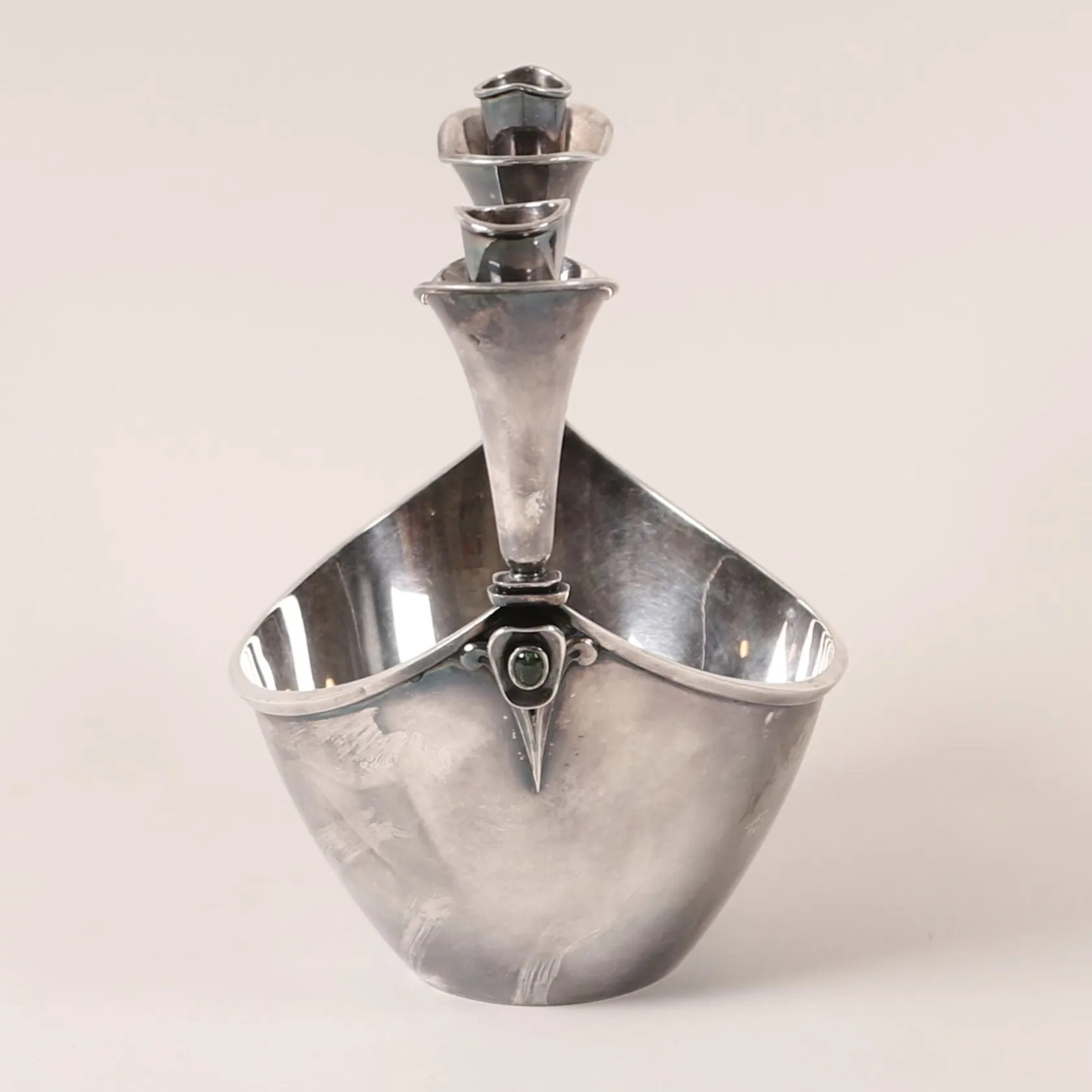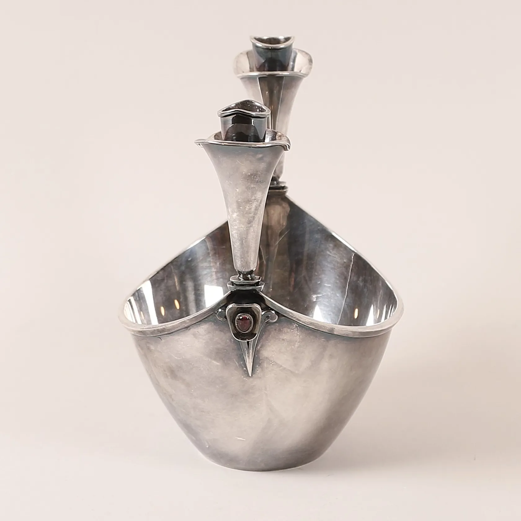 Skål/ljusstake, höjd: 21cm, bredd: 17cm, Helge Lindgren för K. Andersson, Stockholm år 1960, signerad botten, 925/1000 sterling silver. Vikt: 621,5 g.