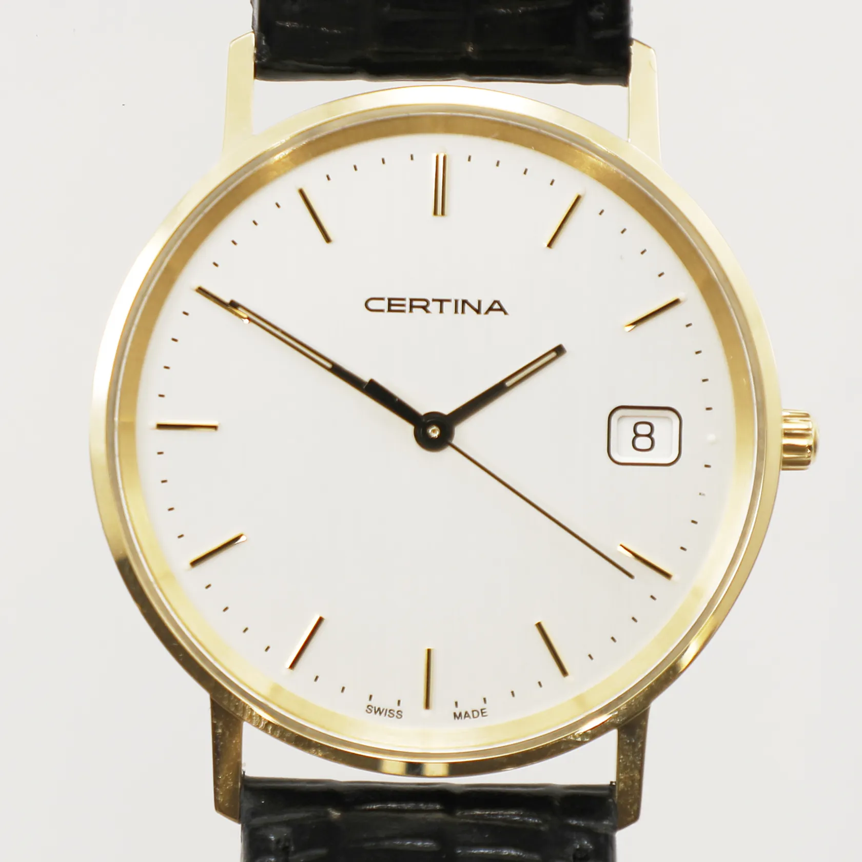 Armbandsur Certina, 18K, Ø33mm, quartz, datum, safirglas, gravyr, läderarmband, manual, originalask