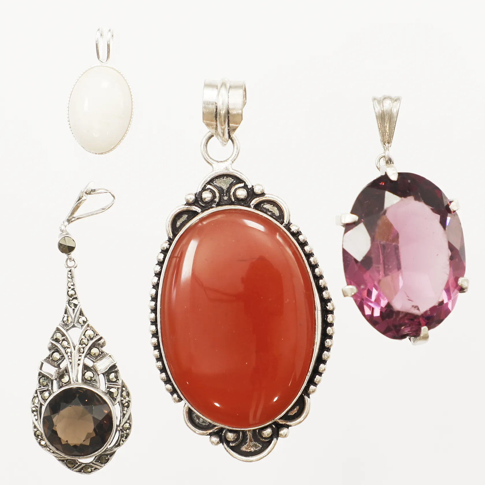 Fyra hängen med stenar, defekta, 813-925/1000 silver Vikt: 33,5 g.