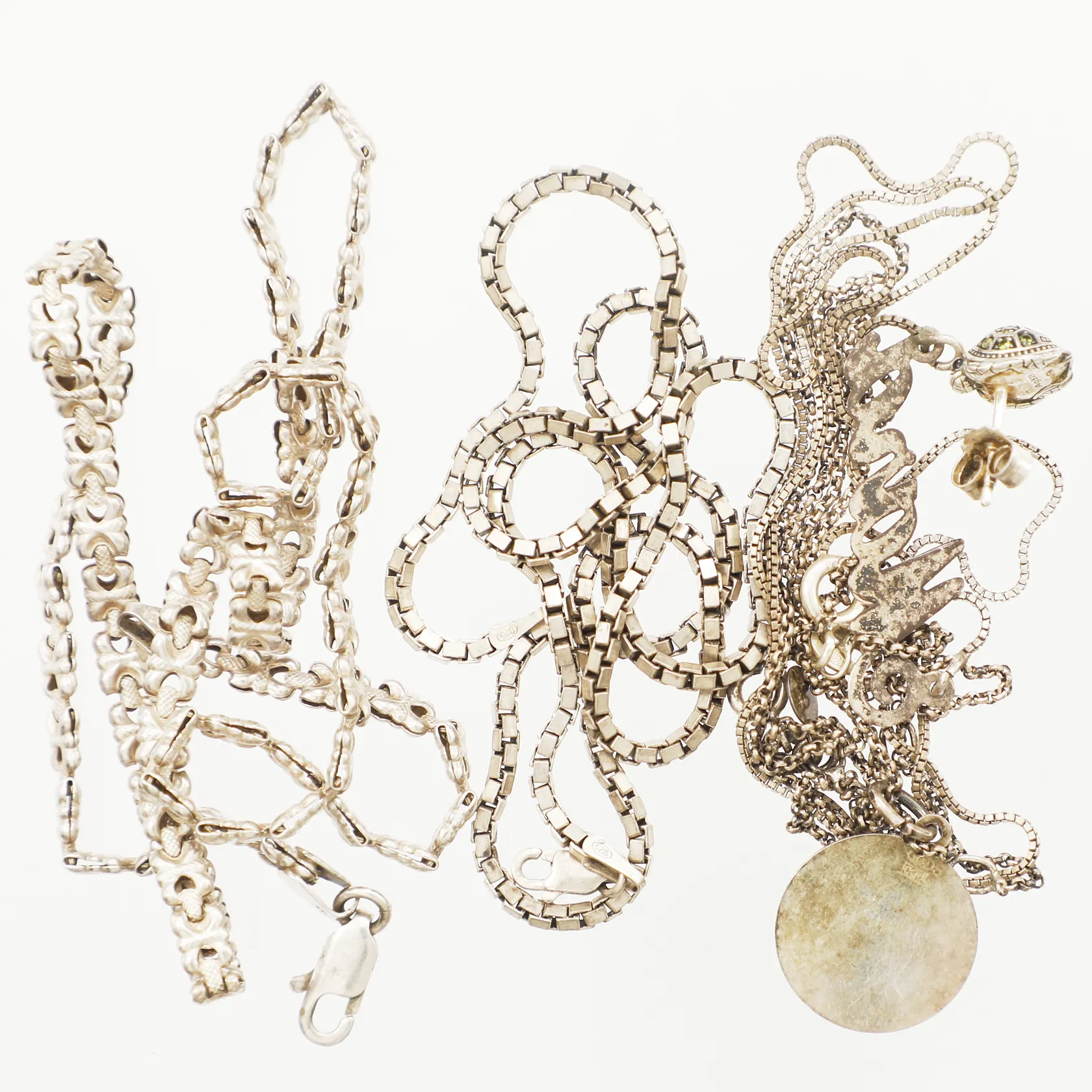 Diverse silver, defekta, gravyr, 925/1000 silver Vikt: 26 g.