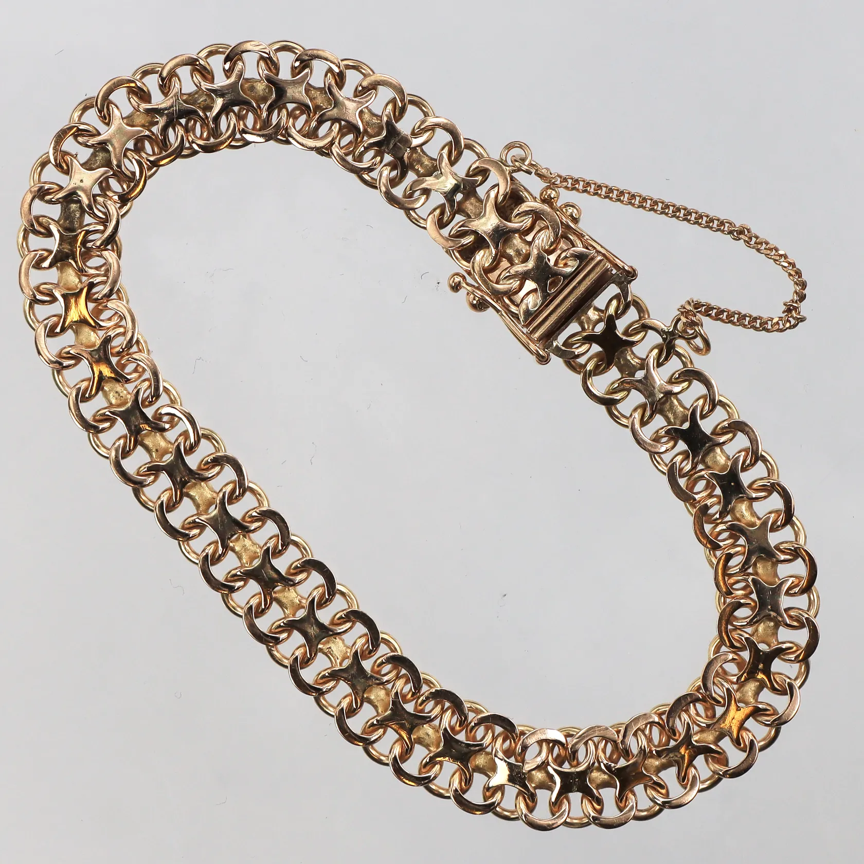 Armband 18k X-länk, längd ca 18.5 cm,bredd 8.8 mm, säkerhetskedja Vikt: 19,4 g.