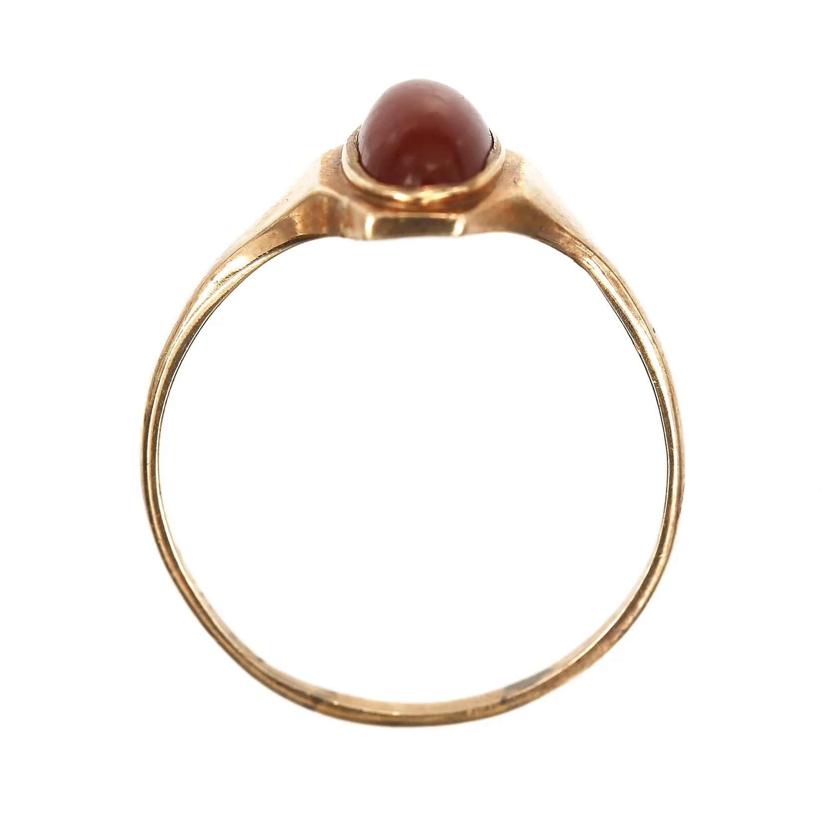 Ring med karneol, stl 14½, bredd 1-9mm, skev, sten löst infattad, 14K Vikt: 0,9 g.