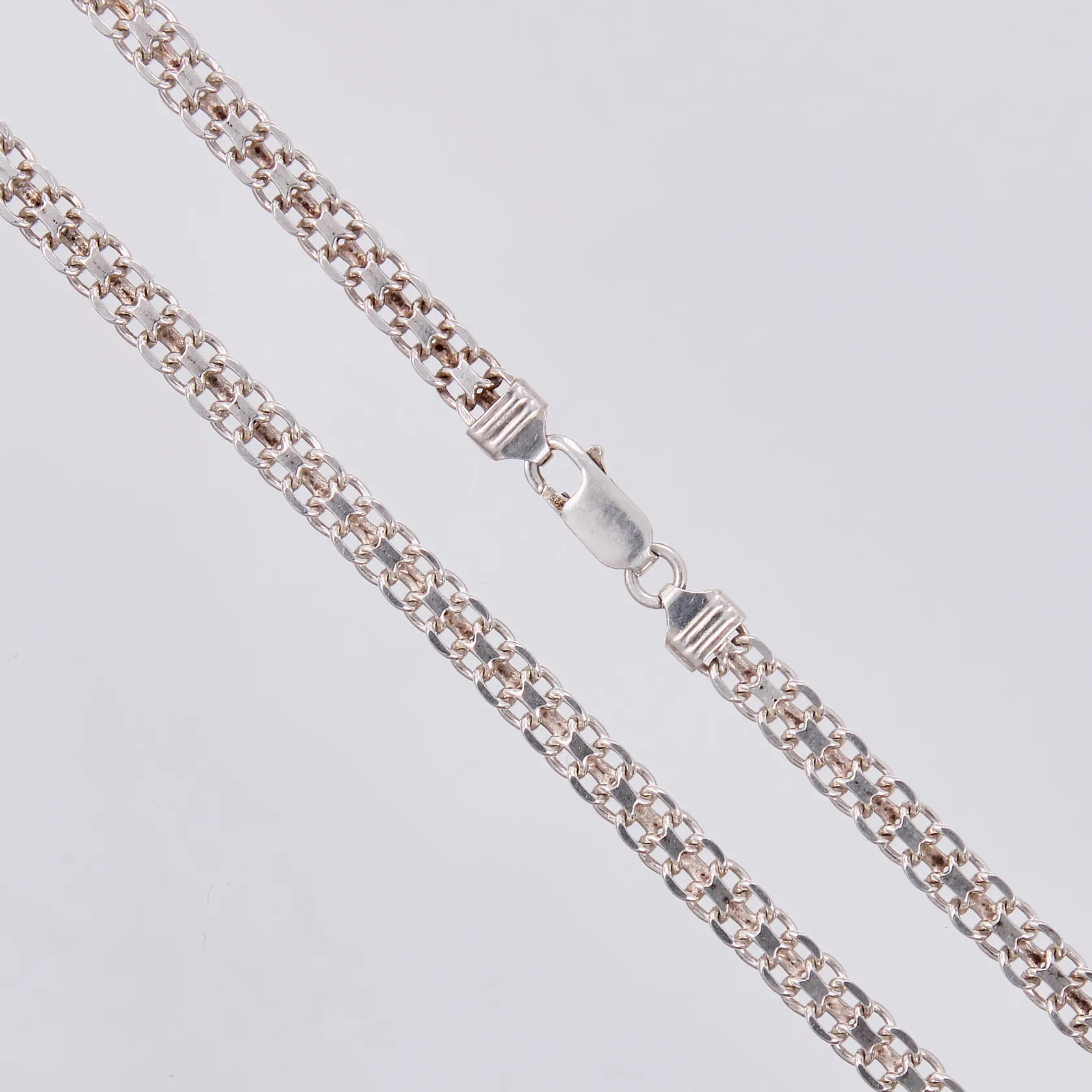 Kedja X-länk längd: ca 42cm bredd: ca 5mm 925/1000 silver Vikt: 11,8 g.