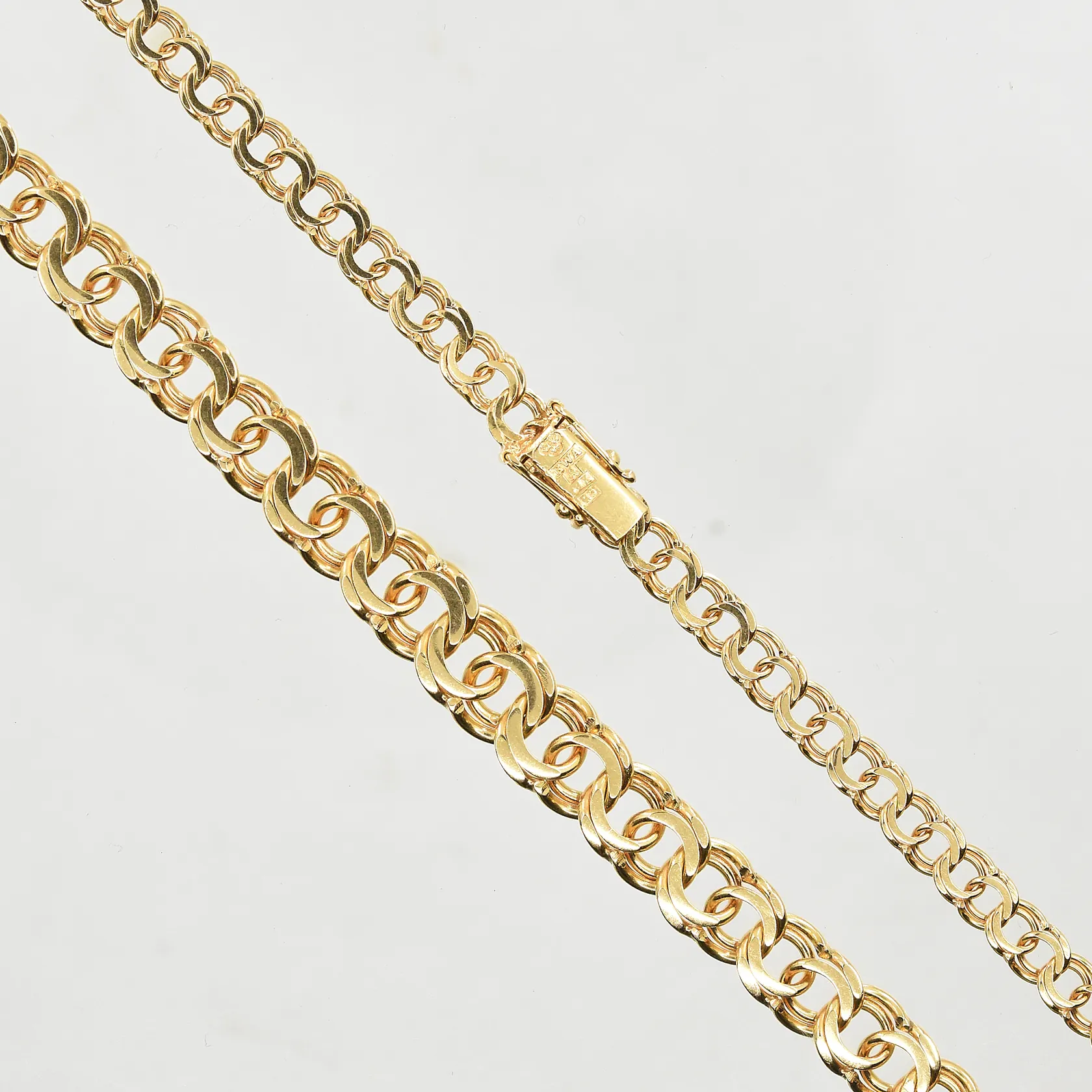 Collier Bismarck doserad längd 45 cm, bredd 5-9 mm, 18K. Vikt: 28 g.