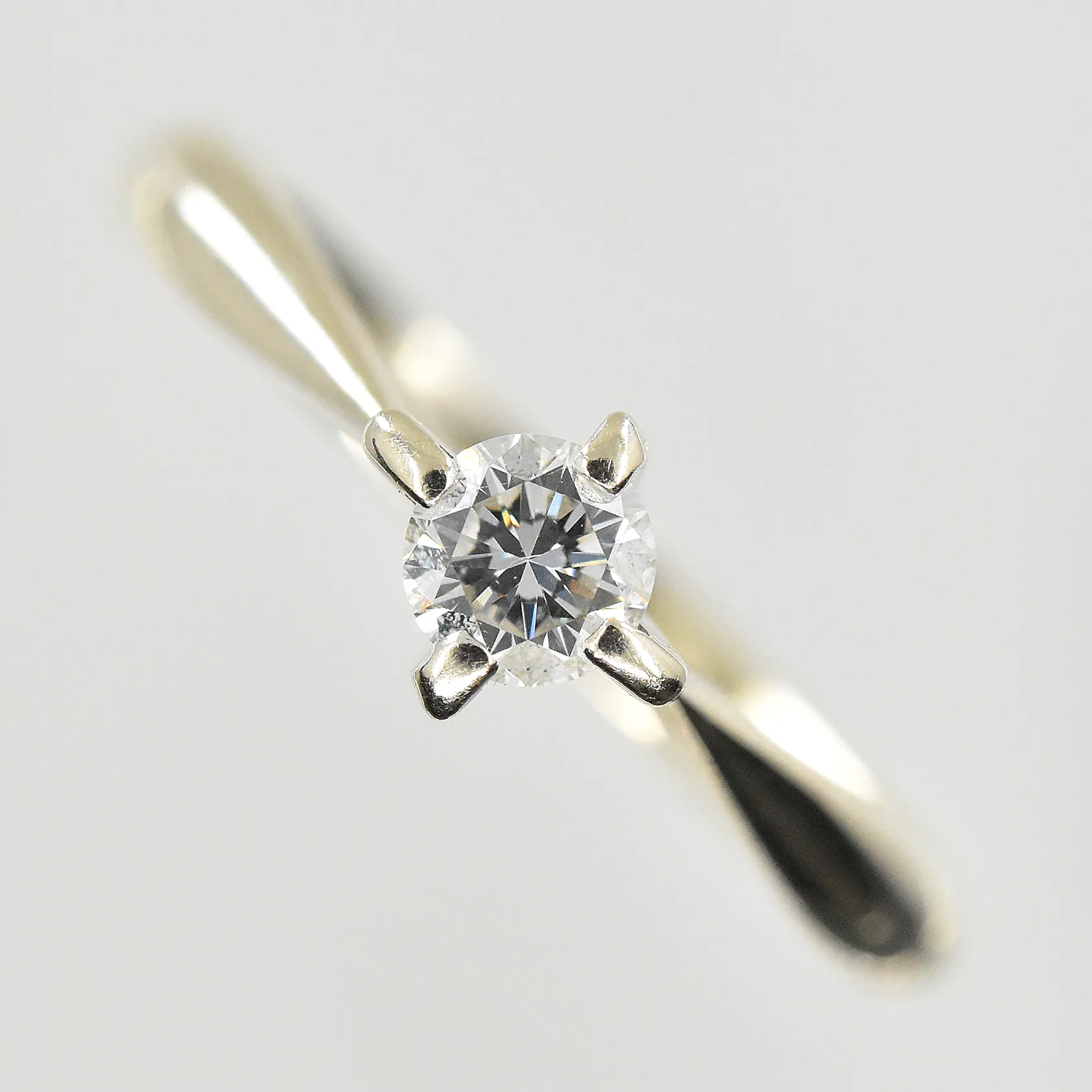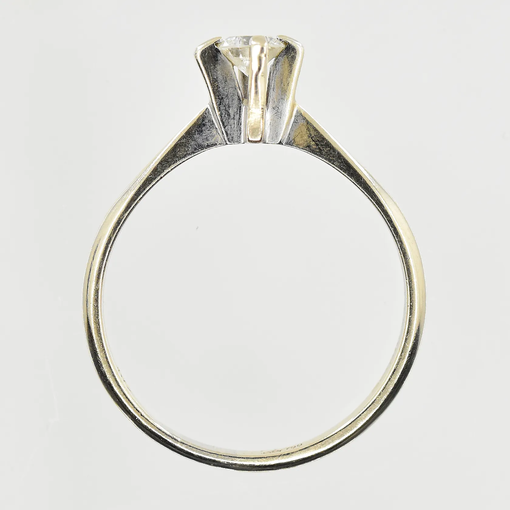 Ring med diamant 0,23ct stl:19, bredd 2-6 mm, behov av omrodiering, gravyr, vitguld, 18K. Vikt: 3 g.
