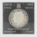Minnesmynt, nominellt värde 200kr, 1995, etui, 925/1000 Silver 27g. Vikt: 27 g.