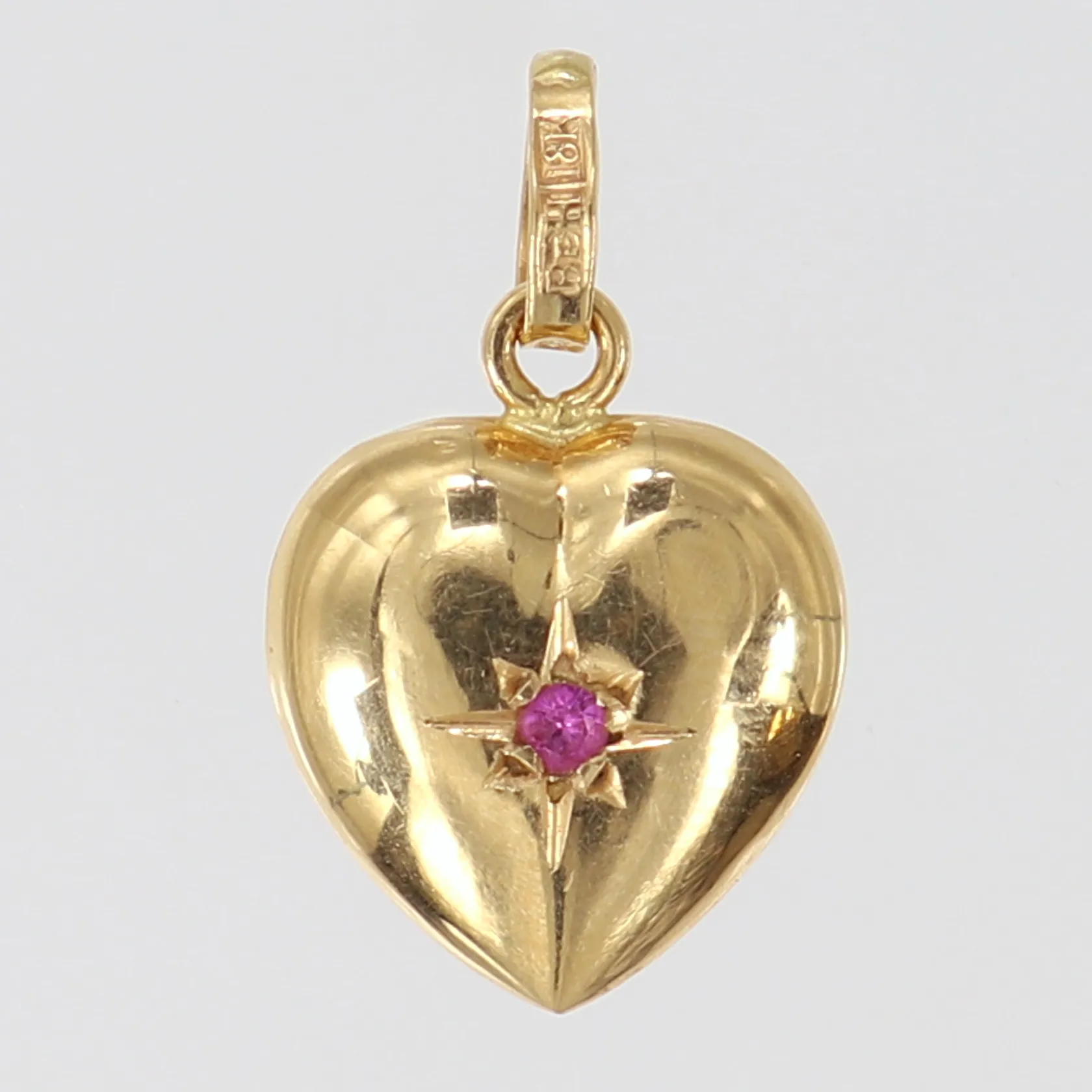 Hänge hjärta med sten, längd inkl ögla ca 18mm, bredd ca 11,5mm, repig, BEH, 18K Vikt: 0,9 g.