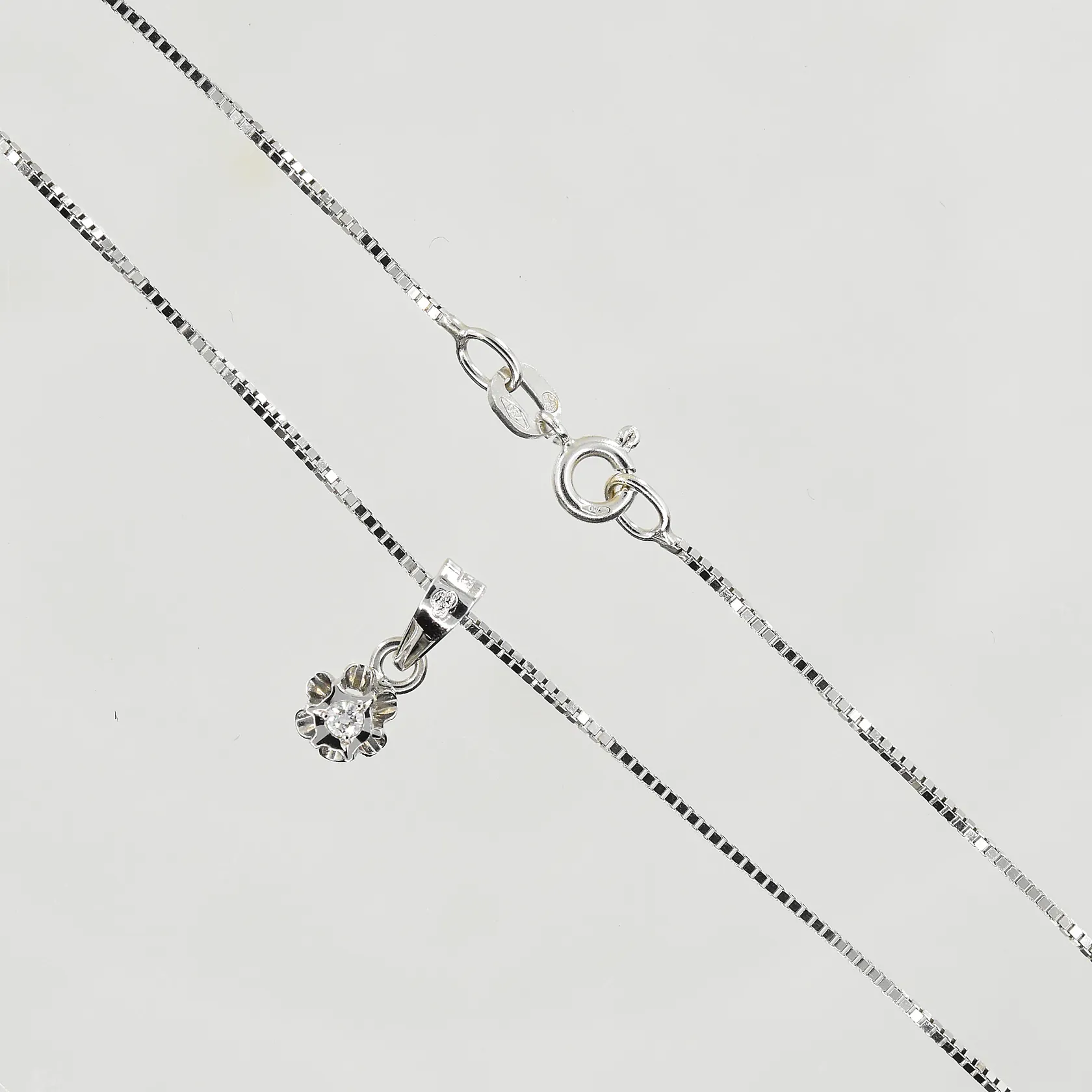Kedja med hänge med diamant 0,03ct W/SI, Spectra, längd 40 cm, länkens bredd 1 mm, vitguld, 18K. Vikt: 3,2 g.