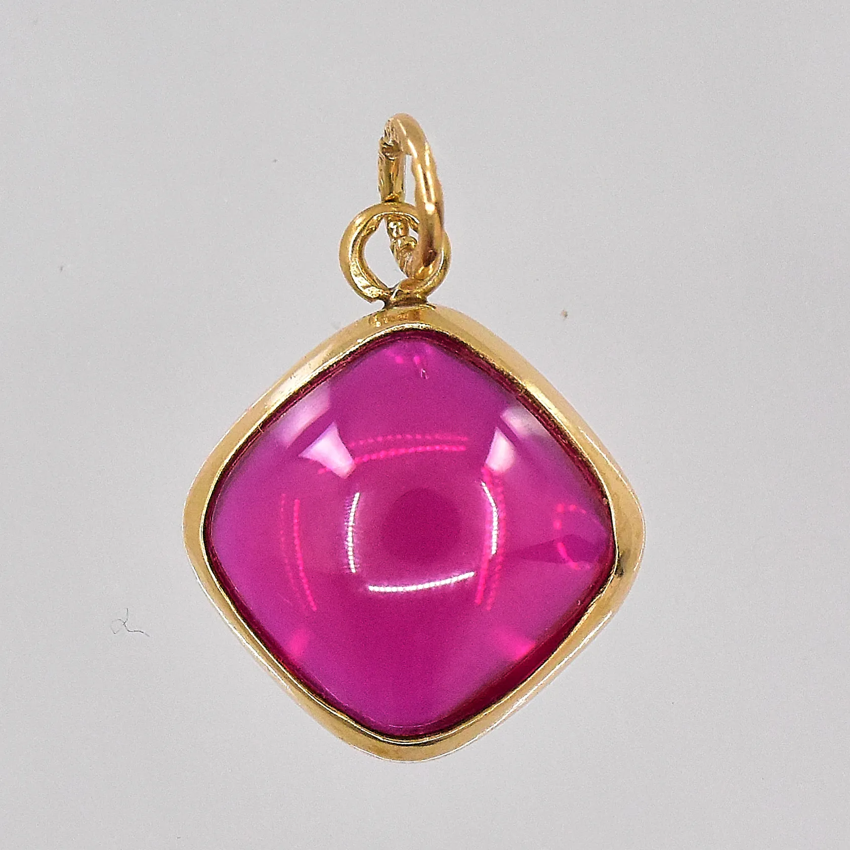 Hänge med röd sten längd 17mm inklusive ögla 18K Vikt: 1,6 g.