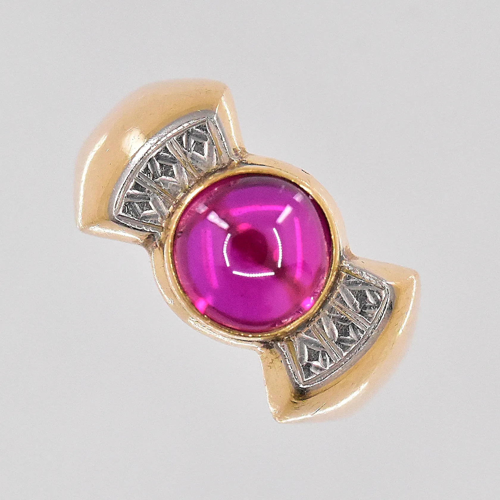 Ring med röd sten stl:15½ 18K Vikt: 2,6 g.