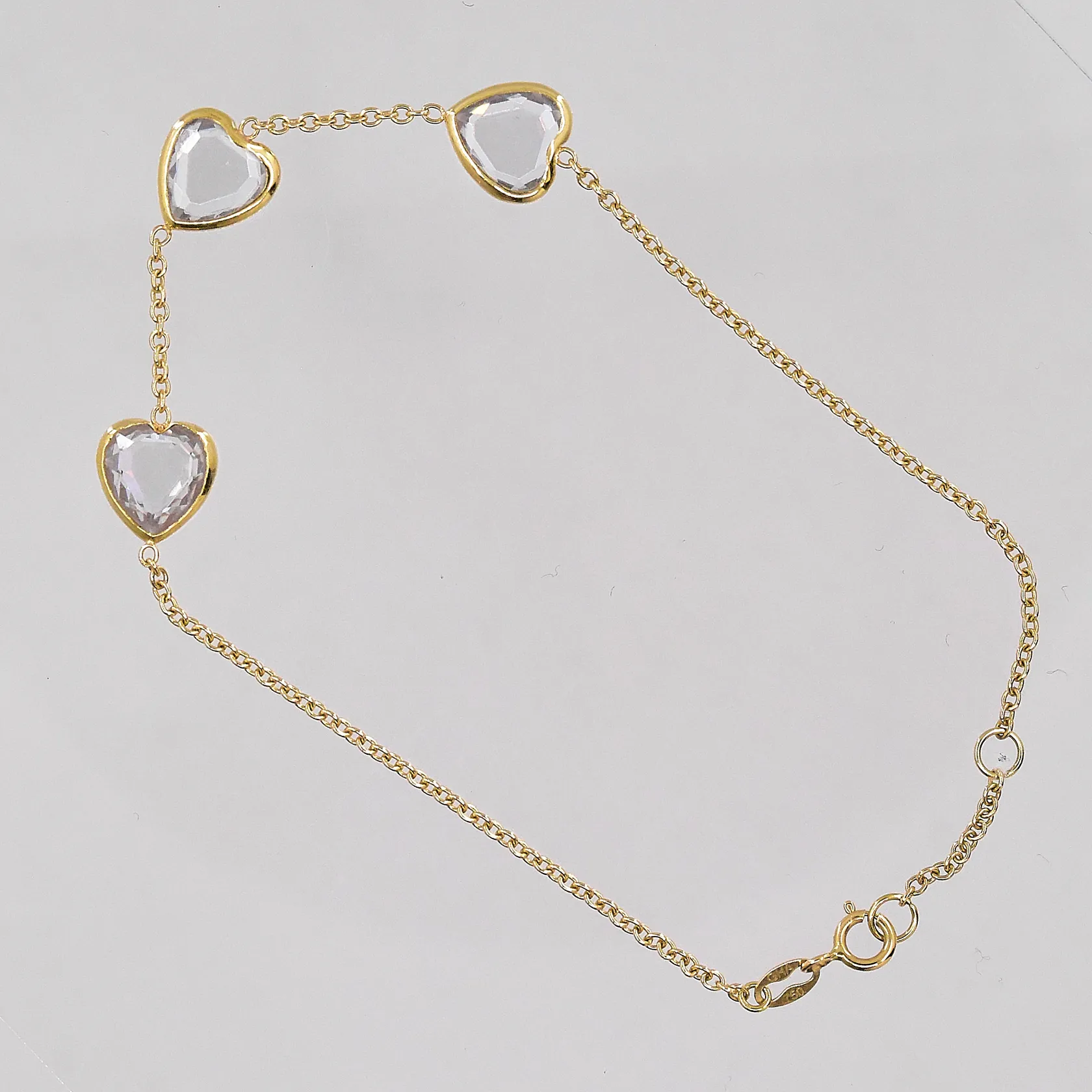 Armband med 3 hjärtan Guldfynd längd 17,5-19cm bredd 1,4mm, 18K Vikt: 2,8 g.