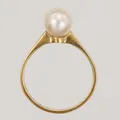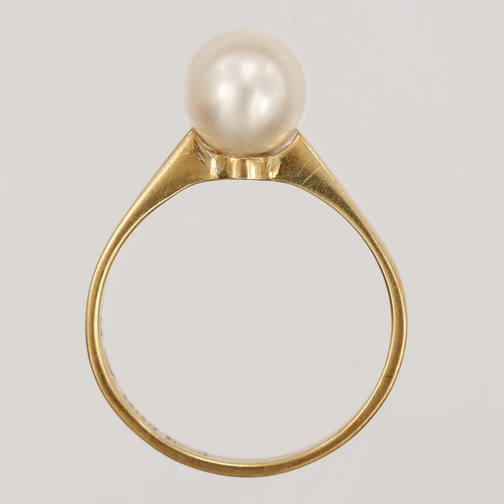 Ring med odlad saltvattenpärla Ø 7,5 mm, Owen & Larsson Co, Djursholm år 1976, stl: 17½, 18K guld. Vikt: 2,7 g.