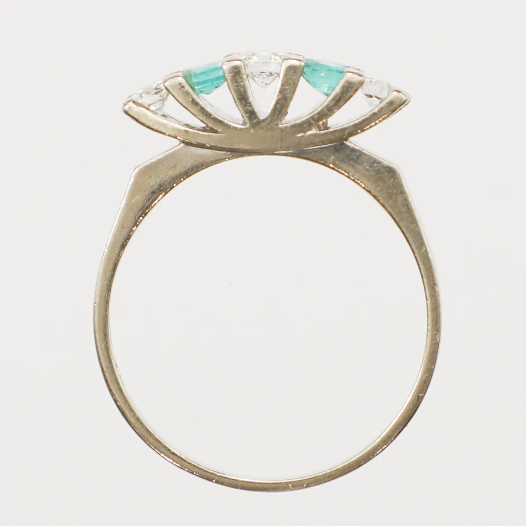 Ring med smaragder och diamanter, 1xca0,16ct 2xca0,10ct, stl 18¼, bredd 2-4,4mm, vitguld, 18K Vikt: 5 g.