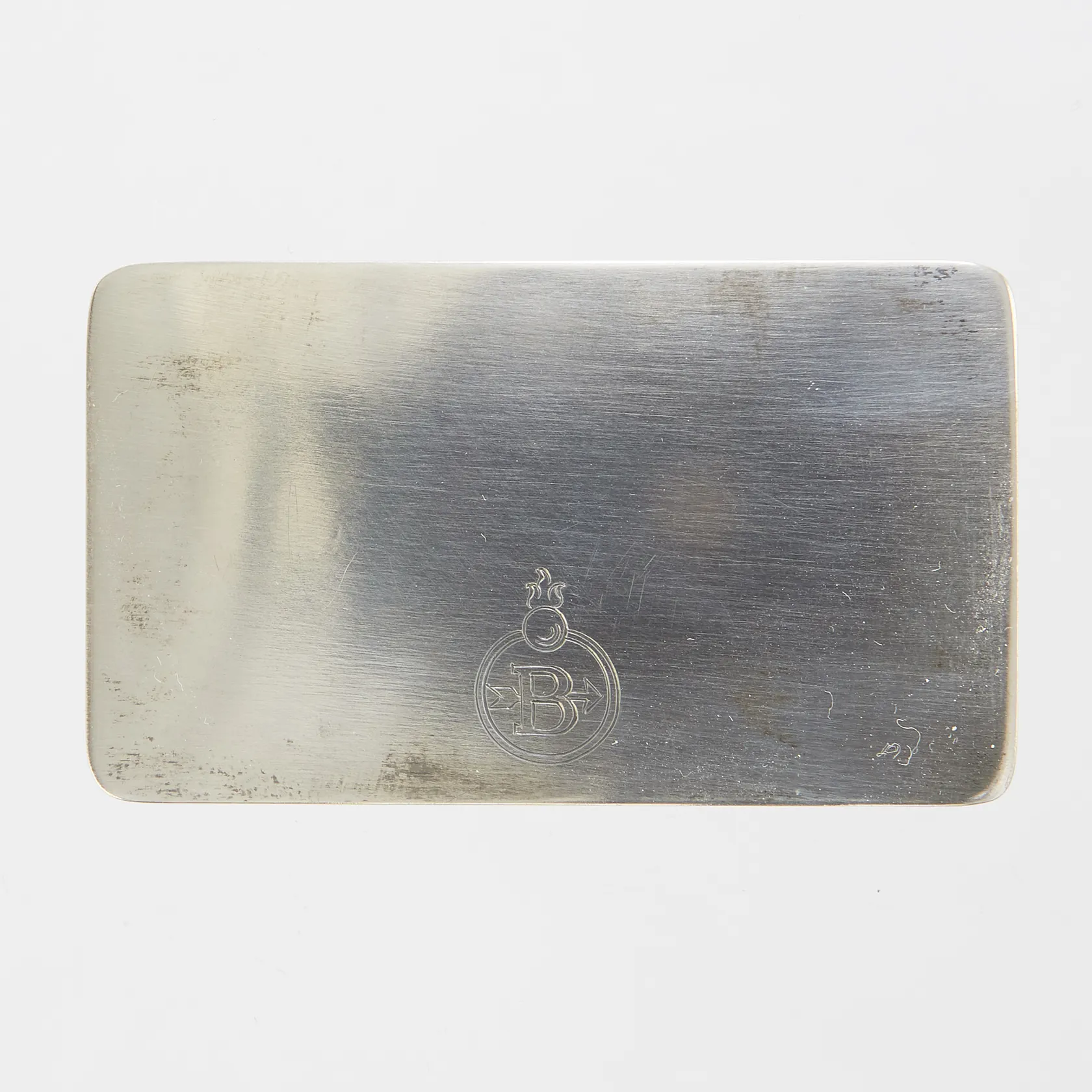 Dosa med Bofors emblem ca 59,7x35mm, missfärgad, Tenn & Silver, Göteborg, 1953, silver, 830/1000, tillpassat etui. Vikt: 37,4 g.