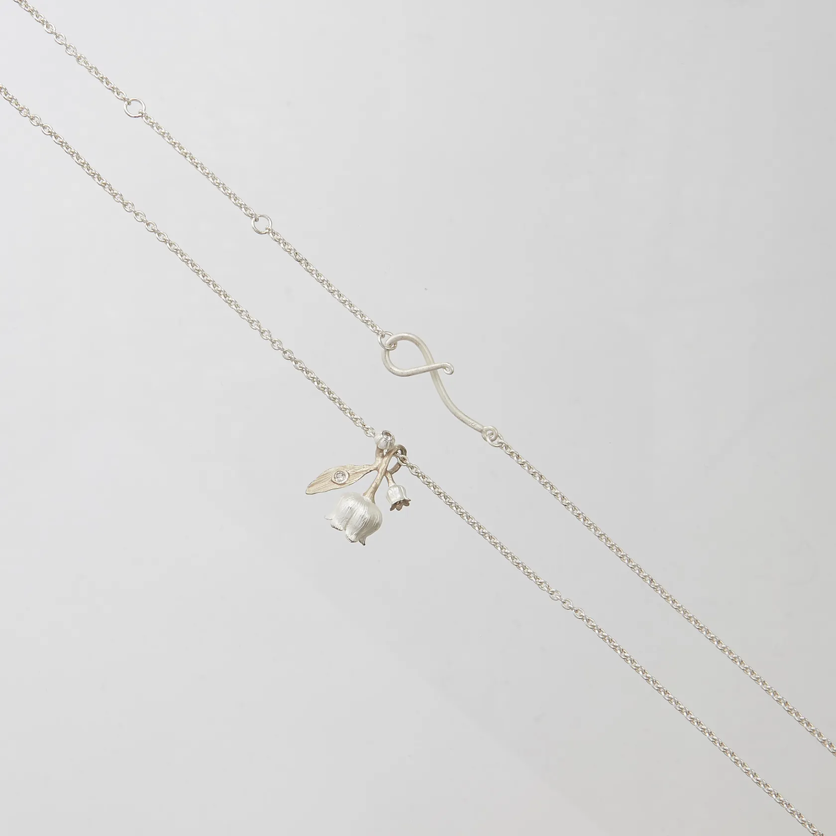 Kedja rundad ankar med hänge blomma, vita stenar, Lily of the valley, Lotta Jewellery, längd ca 44,5-47,5-50,5cm, bredd 1-18mm, s-lås, 925/1000 silver Vikt: 7,1 g.