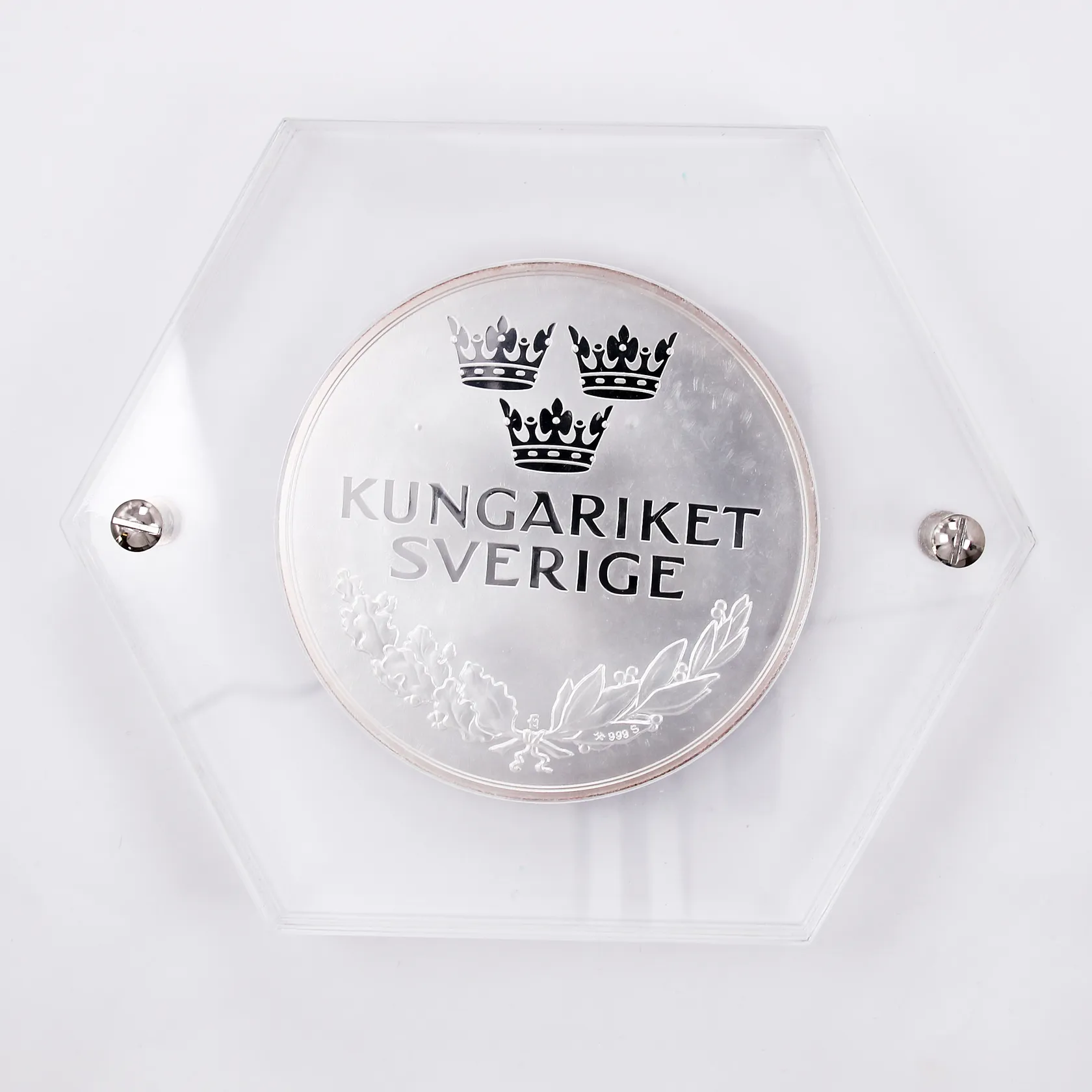 Mynt Ätten Bernadotte Ø ca 10cm, 999/1000, inbunden, bruttovikt: 1625,8g Vikt: 1625,8 g.