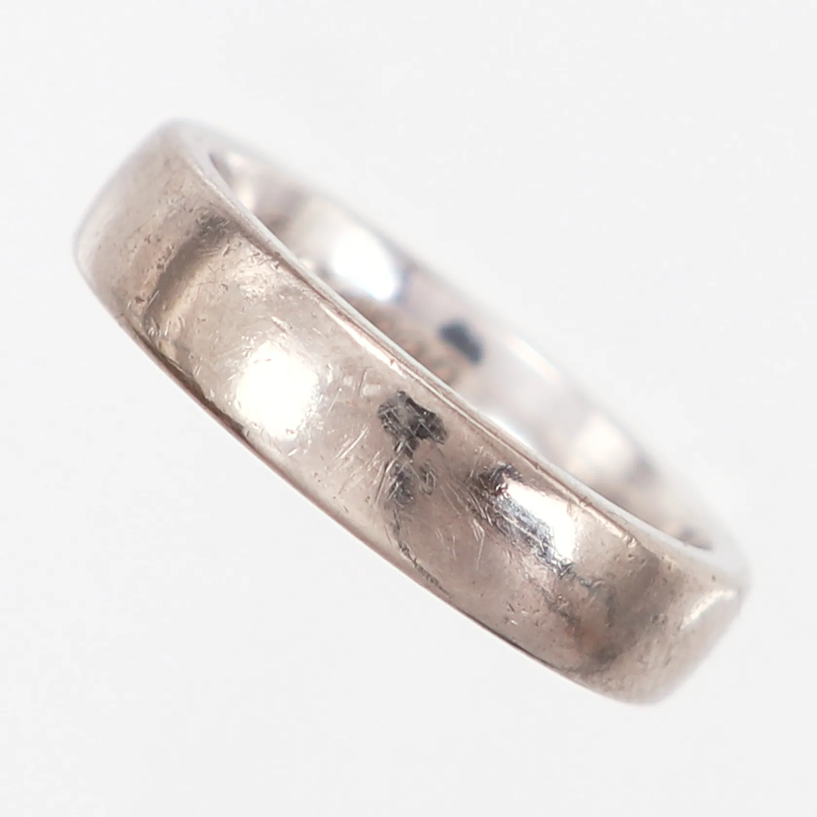 Ring, vitguld, Ø17¾, slät, bredd 5,0mm, Schalins, gravyr, 18K Vikt: 9,8 g.