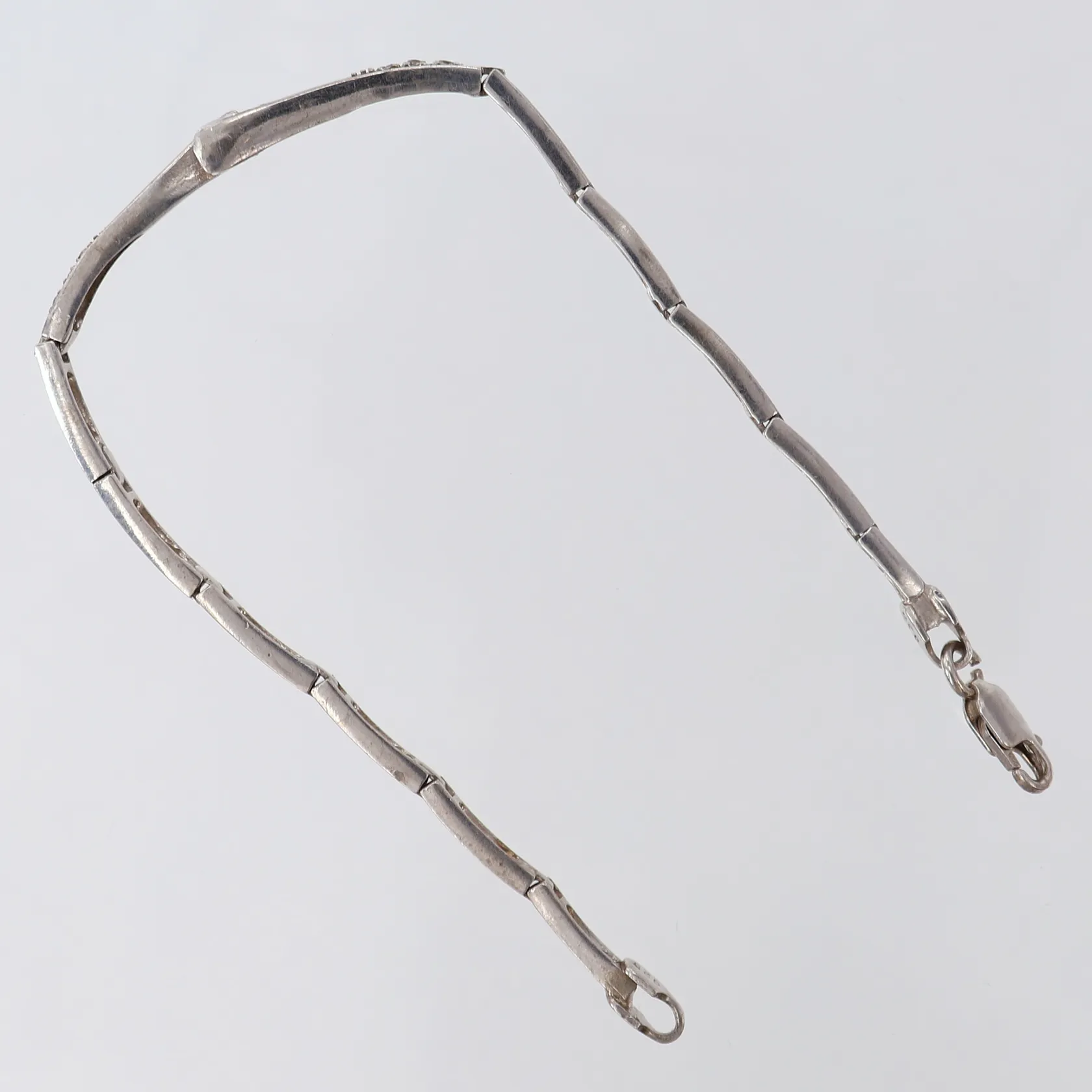 Armband med vita stenar, halvstelt, längd 20cm, bredd 3-6,5mm, Silver 925/1000. Vikt: 10 g.