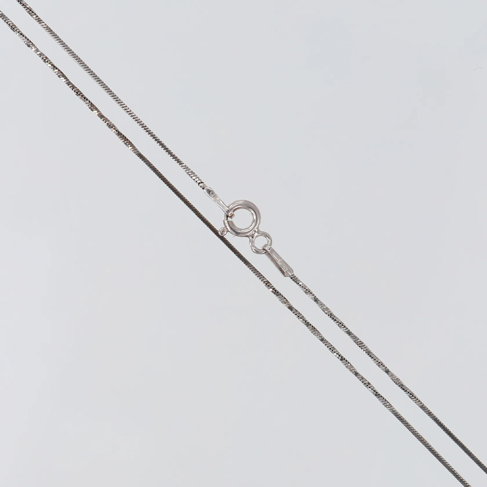 Kedja tvinnad, längd 55cm, bredd 0,6mm, ojämn, Silver 925/1000. Vikt: 2,2 g.