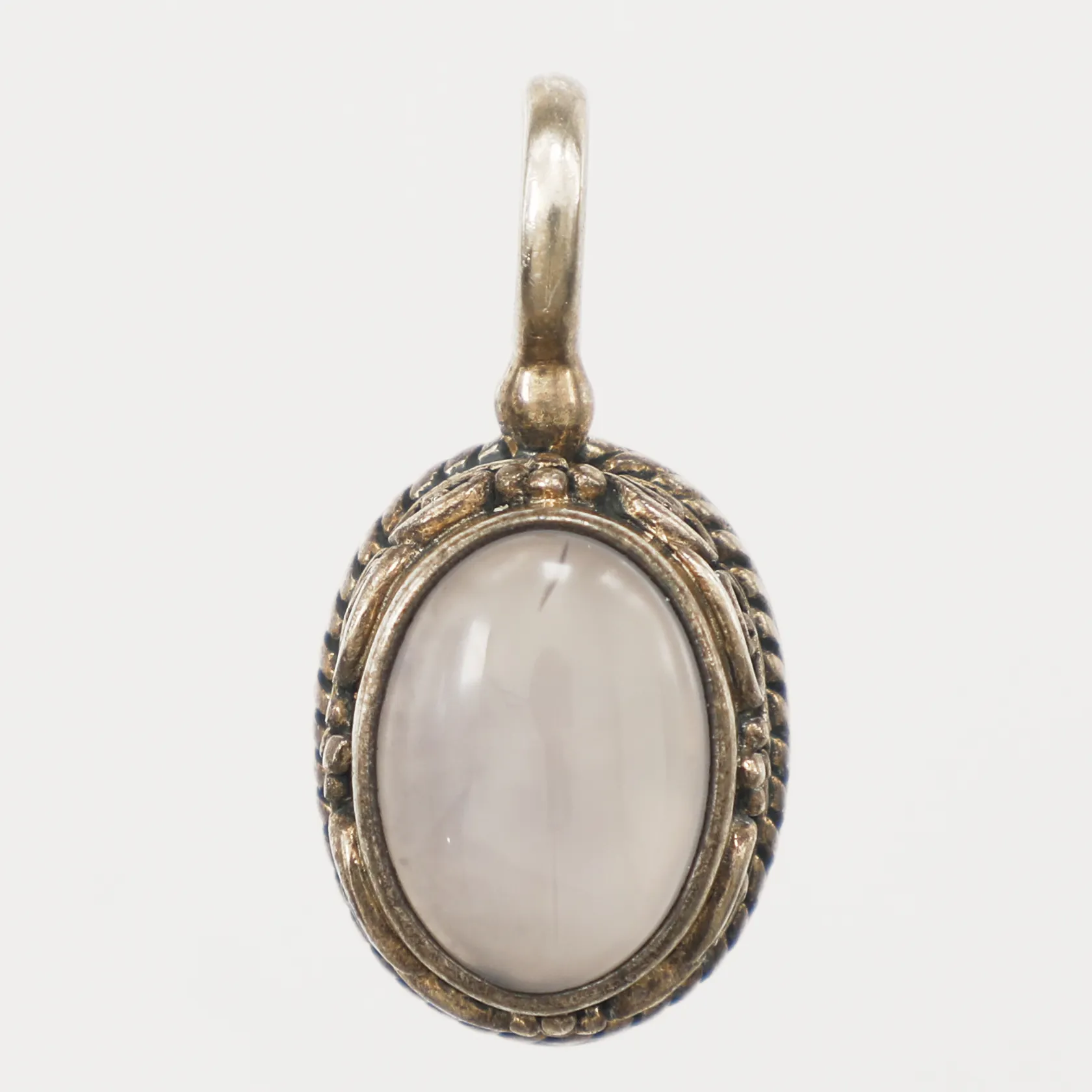 Hänge med troligen kalcedon, längd 30mm, bredd 15mm, 925/1000 silver Vikt: 7,3 g.