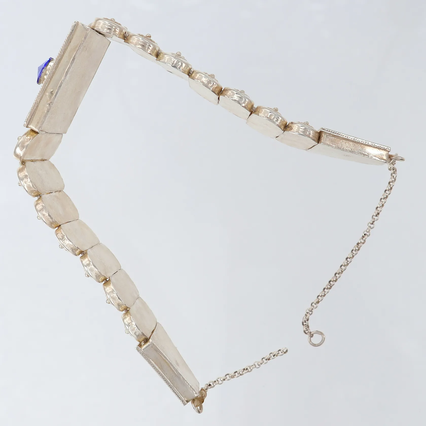Collier/armband med blåa stenar, ca 33,5cm, bredd 2-31mm, flerdelat, ihopsatt med tråd, lås saknas. 925/1000 silver Vikt: 55,2 g.